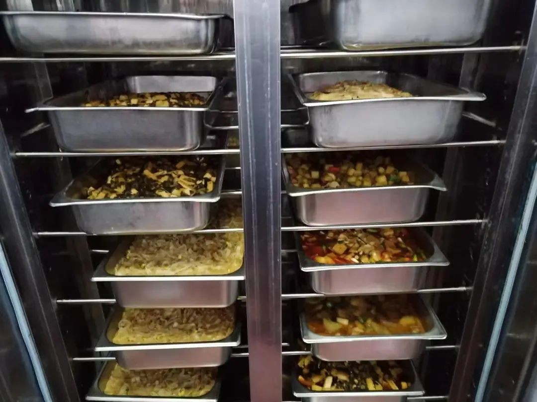 学校从就餐时间和保温方法入手,解决了饭菜变凉的问题。各年级就餐时间分段,保证每餐次热菜从出锅到餐盘不超过6分钟,烧菜采用专业保温设备保温,提前打开保温售卖台,保证温度达标,量较大的菜肴,采用集中保温,分段供餐的形式来保证温度。