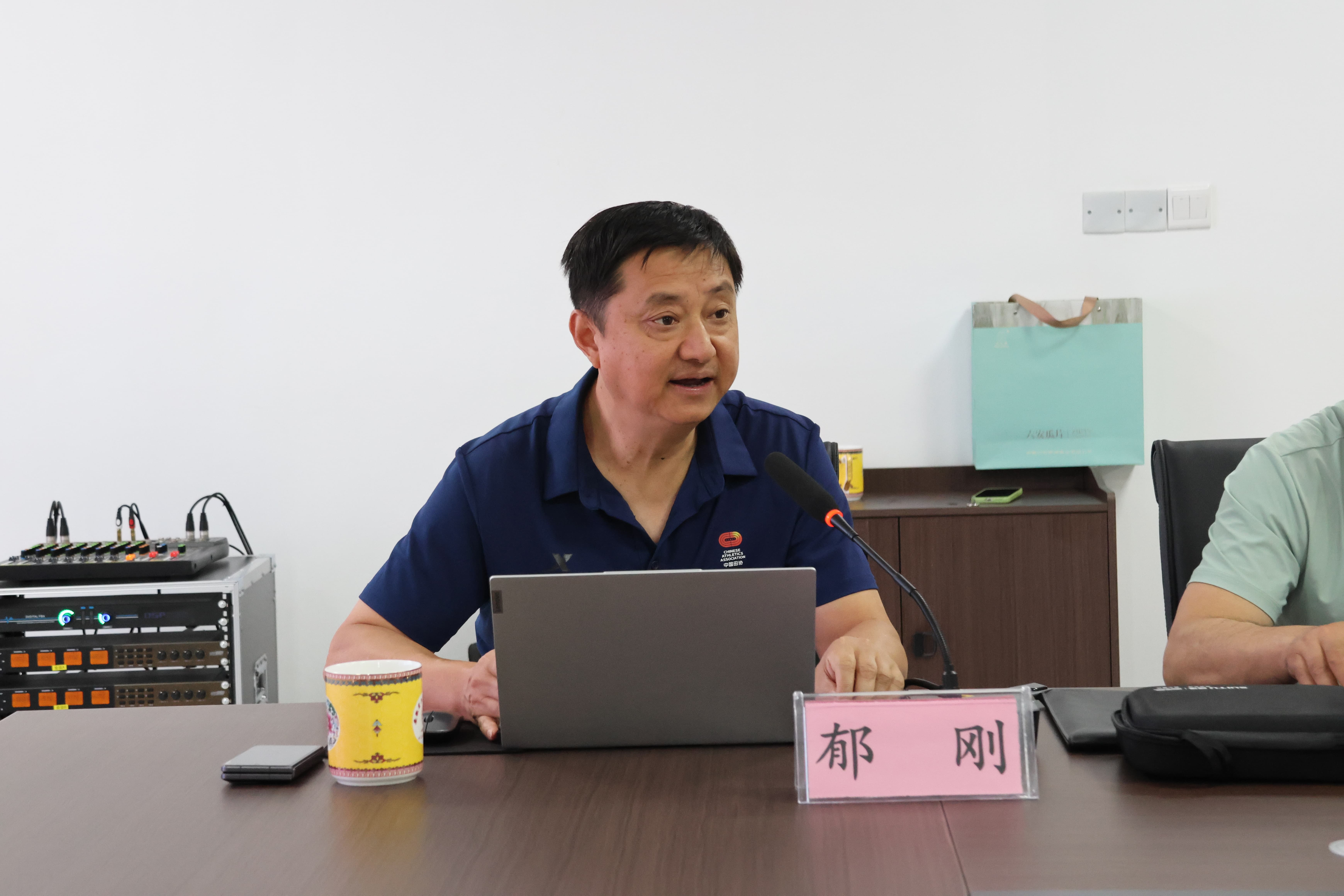 讲座由安徽天河教育集团体育顾问、技术指导黄武胜(合肥师范学院体育科学学院原党委委员、副院长)主持,他首先对郁校长作了简要介绍。郁刚,安徽省体育运动学校副校长,安徽体育运动职业技术学院教练员委员会主任、田径队主教练员,安徽省田径协会理事、教练员委员会副主任,高级教练员、国家级裁判员,国家级社会体育指导员,安徽省青少年体育训练先进工作者,全国田径锦标赛男子100米冠军,运动健将。