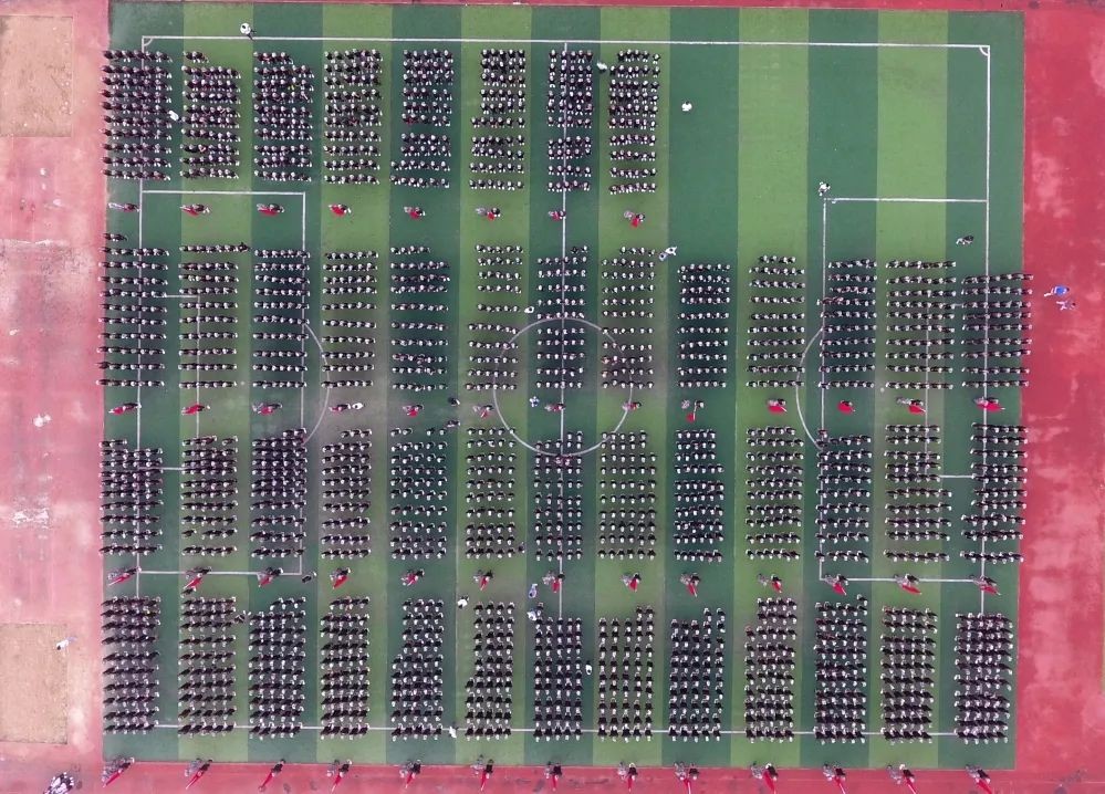 最后,最为期待的方阵汇演压轴登场。两千七百多名高一新生组成巨大方阵,摆出“六安实验中学2012-2022十周年”字样和中国地图图案,同学们气势如虹,团结协作,用昂扬向上的精神面貌和朝气蓬勃的青春力量向实验中学建校十周年和即将召开的党的二十大献礼,祝愿祖国永远繁荣昌盛,共绘青春美好蓝图!