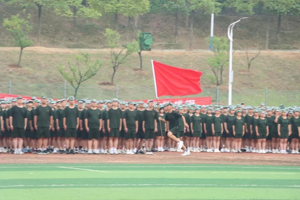 伴随着雄浑激昂的音乐,训练有素的新生们昂首阔步、意气风发地依次走过主席台,向领导们充分展示六天的训练成果。坚定的步伐彰显了专属于青春的朝气蓬勃,嘹亮的口号展现了学子的自信风貌。
