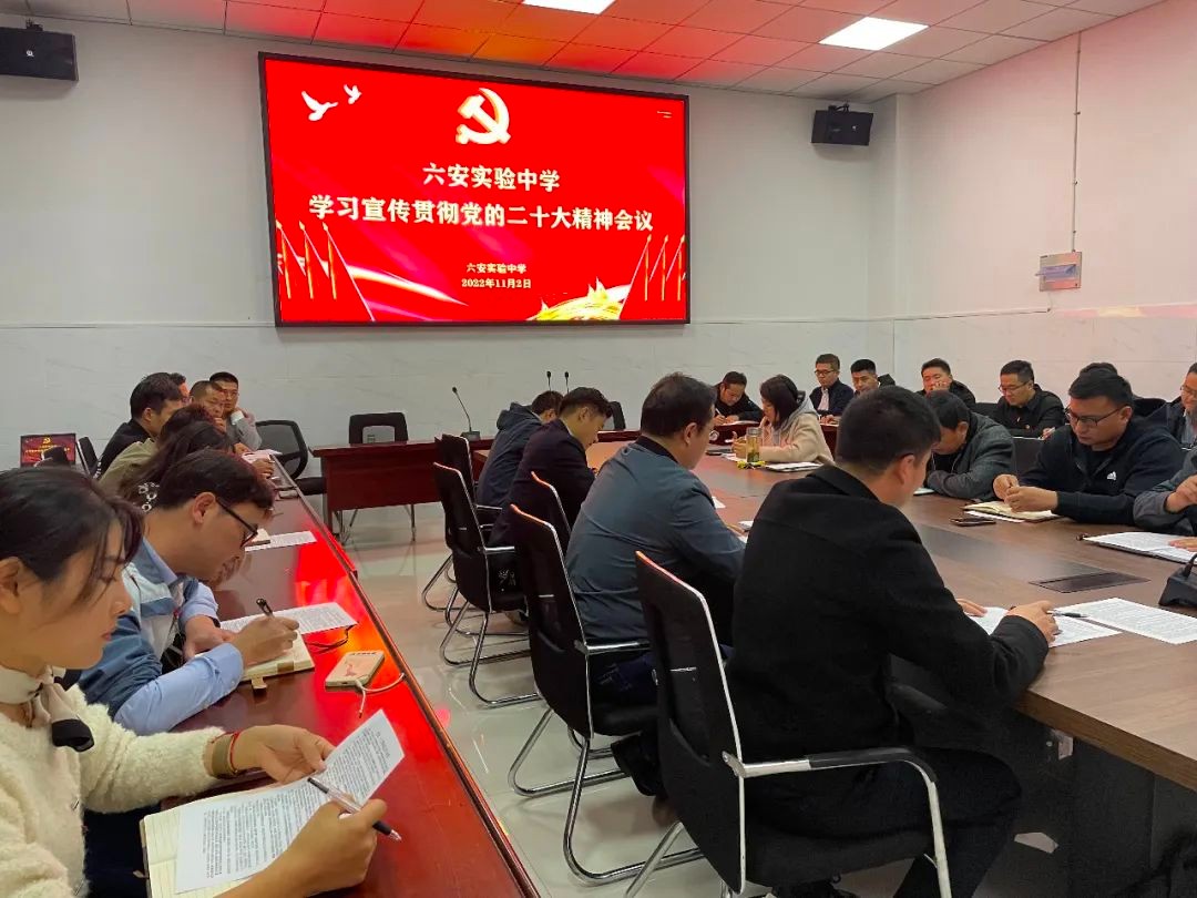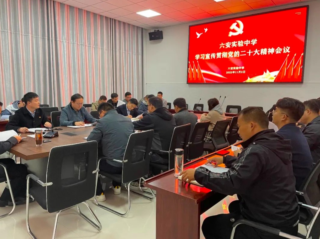 11月2日晚,六安实验中学在博雅楼一楼会议室召开学习宣传贯彻党的二十大精神会议,校党支部委员、全体校级领导班子、中层干部参加会议。会议由党支部书记严寒主持。