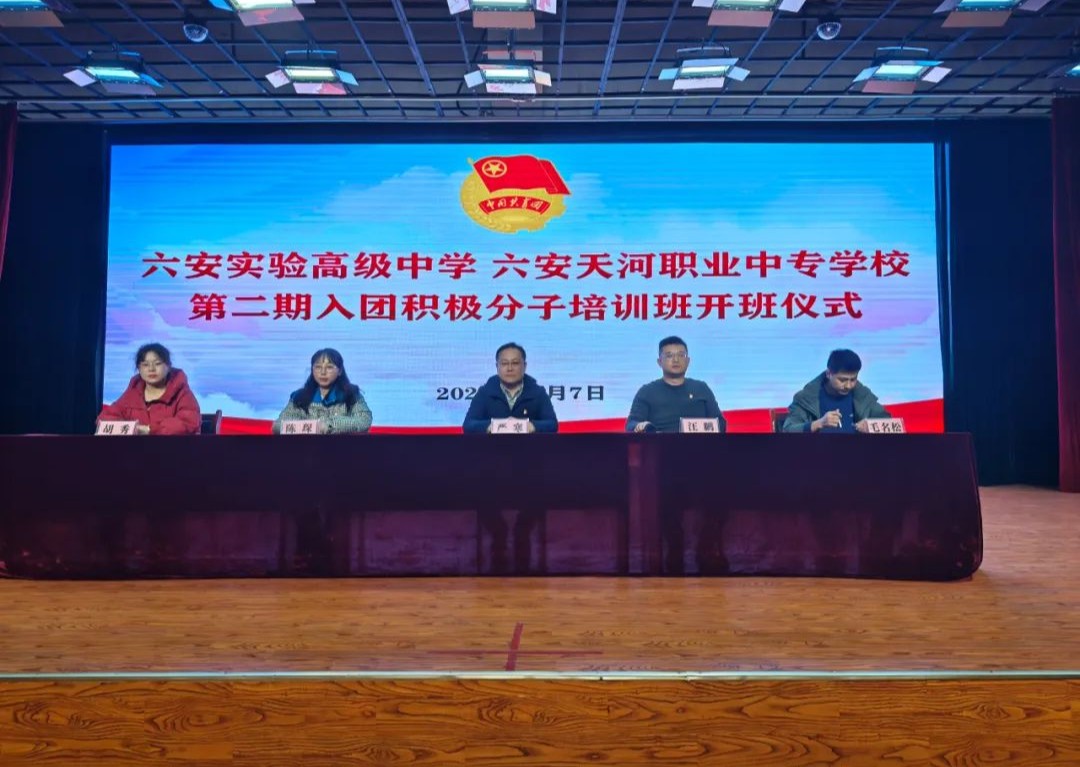 为深入学习贯彻习近平新时代中国特色社会主义思想和党的二十大精神,进一步强化团的基层组织建设,深入开展团课学习教育,坚定入团积极分子的理想信念,激发入团积极分子的学习热情,12月7日晚,六安实验高级中学、六安天河职业中专学校第二期入团积极分子培训班开班式在报告厅举行。校党支部书记严寒、团委书记汪鹏、团委副书记陈琛、校团委委员及365名入团积极分子参加了开班式,开班式由陈琛主持。