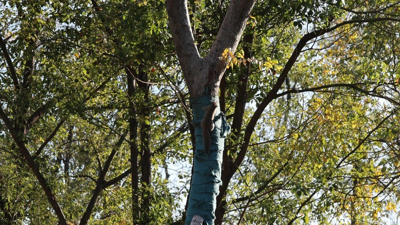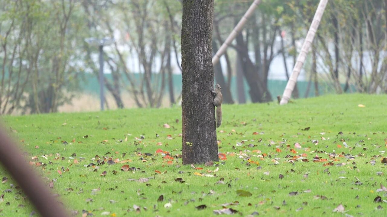 松鼠是校园里最灵动的金色笔触。不经意间,它们从一棵树梢轻盈跃向另一棵枝头,在交织的光影划出流畅弧线。它们格外偏爱那片燕鸣山旁的树林——抱着新采的松果端坐枝杈。秋冬时节最为忙碌,沿着树干飞窜储备食物,偶尔路过的学生会让它惊慌“失手”,榛果掉落,萌态十足。