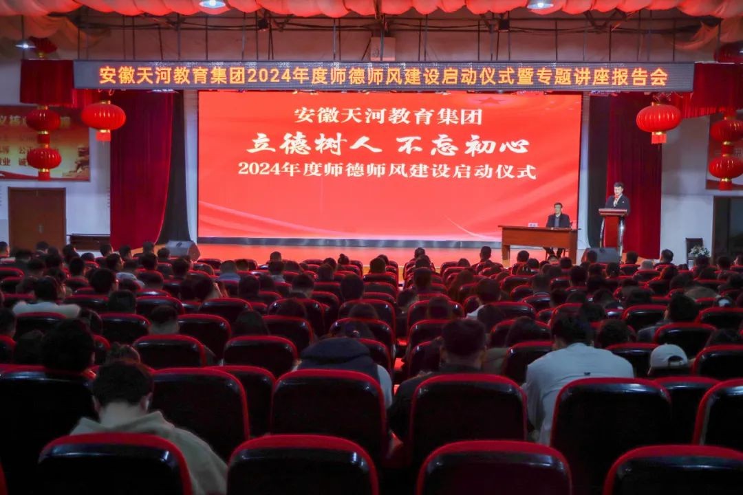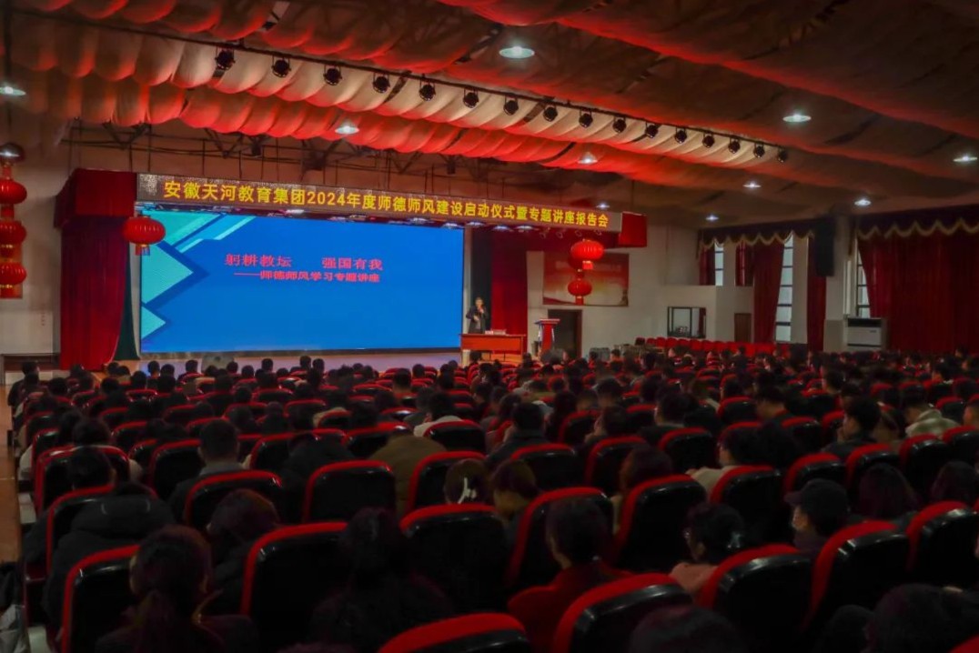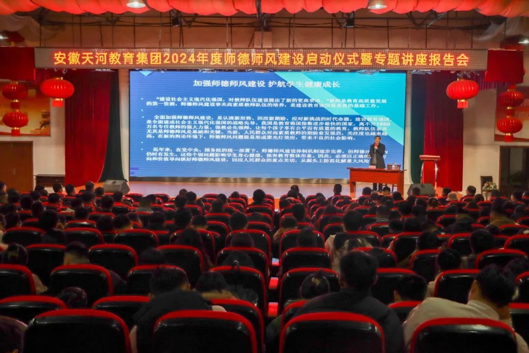 为进一步加强师德师风建设,提升教师文明从教、规范从教意识,增强教师的责任感、使命感、荣誉感,形成争做“四有”好老师的良好氛围,安徽天河教育集团于3月17日上午,在慧源堂三楼报告厅举行了2024年度师德师风建设启动仪式暨专题讲座报告会。会议由执行校长张兵主持,全体教师参会。
