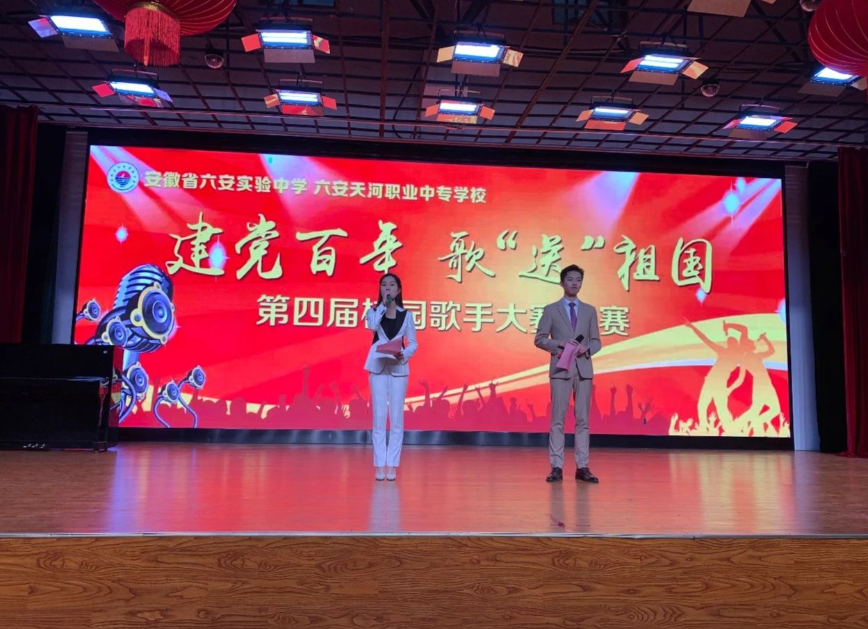 为庆祝中国共产党成立100周年,增强青年学子爱党爱国情怀,进一步繁荣校园文化生活,推动校园文化建设,给广大学生提供一个展示自我的平台和绽放青春的机会,由校长室牵头、校团委主办的安徽省六安实验中学第四届校园歌手大赛在12月激情开赛。经过一个月的激烈角逐,共有13位选手在班级海选、校园初赛中脱颖而出,进入总决赛。3位爱好音乐的教师也积极参与献唱。