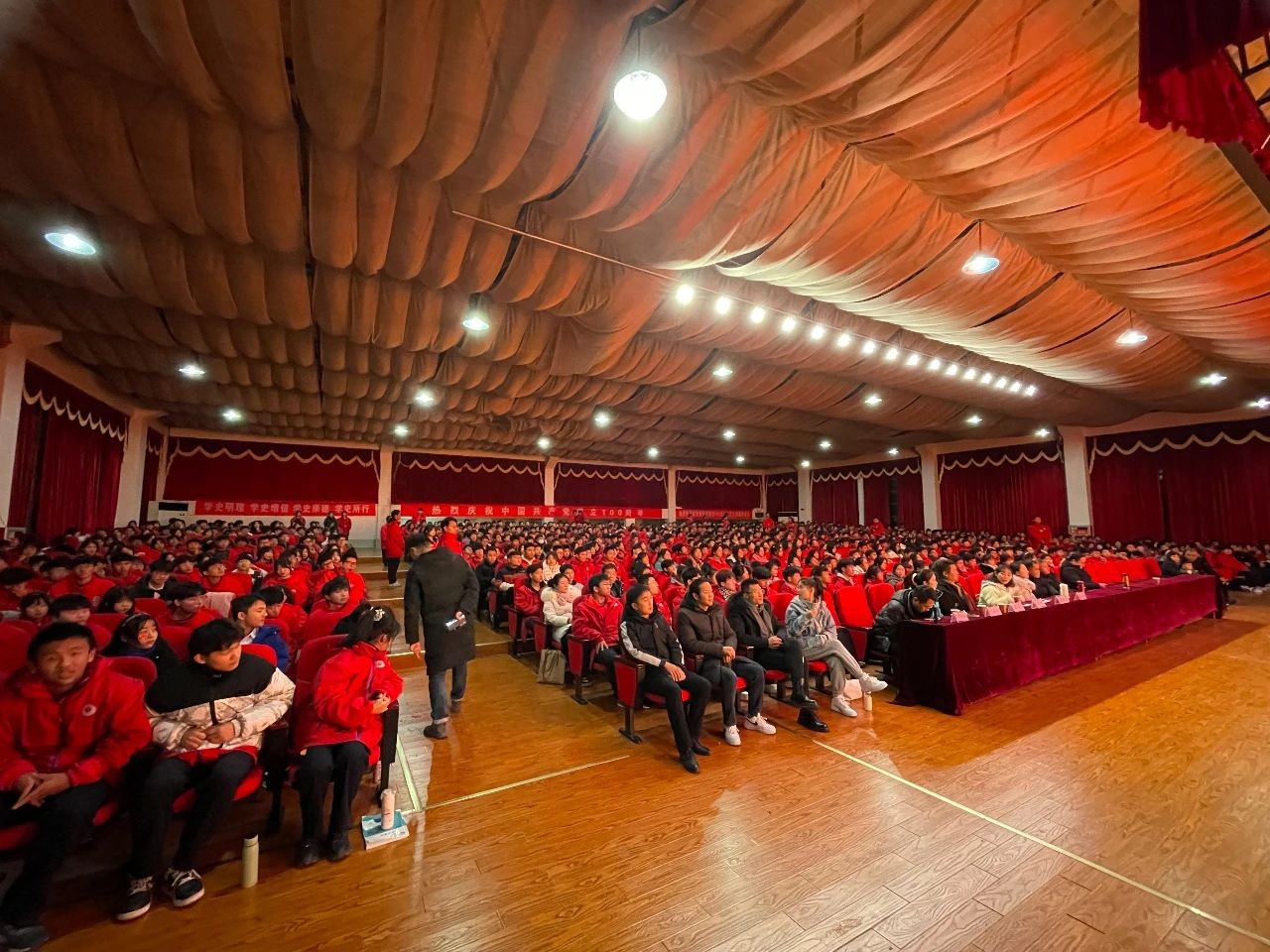 除了各位参赛选手以外,高二年级音乐班的同学也为我们带来了专业的表演,一首首婉转动听的红歌,表达了当代青年对建党百年的美好祝愿。