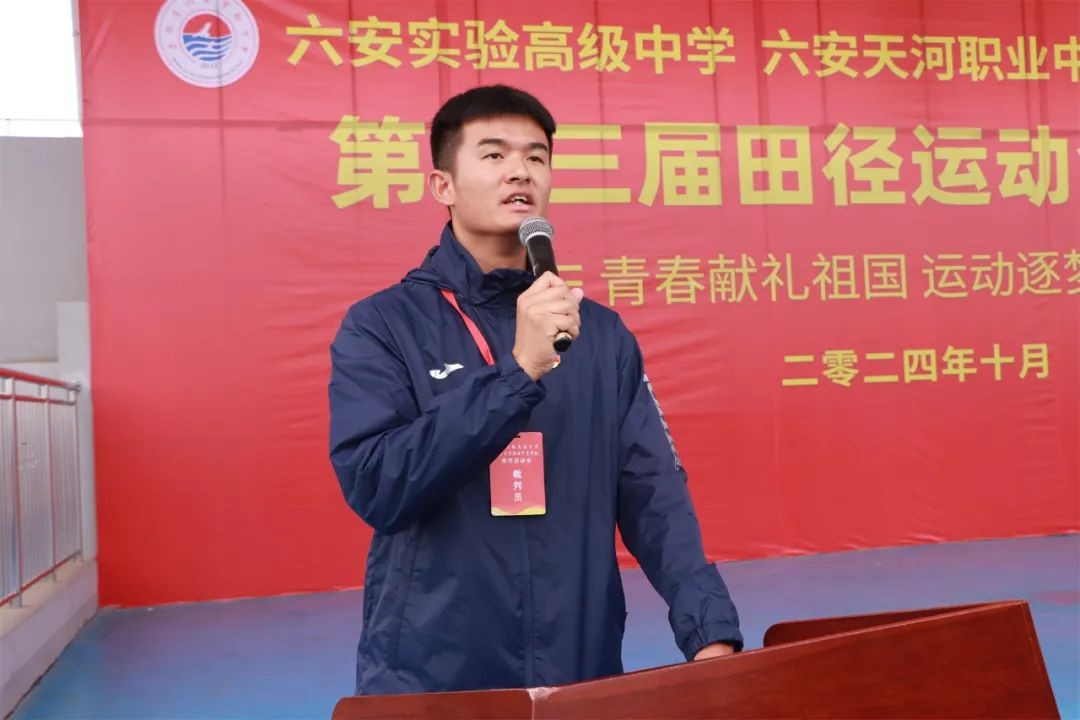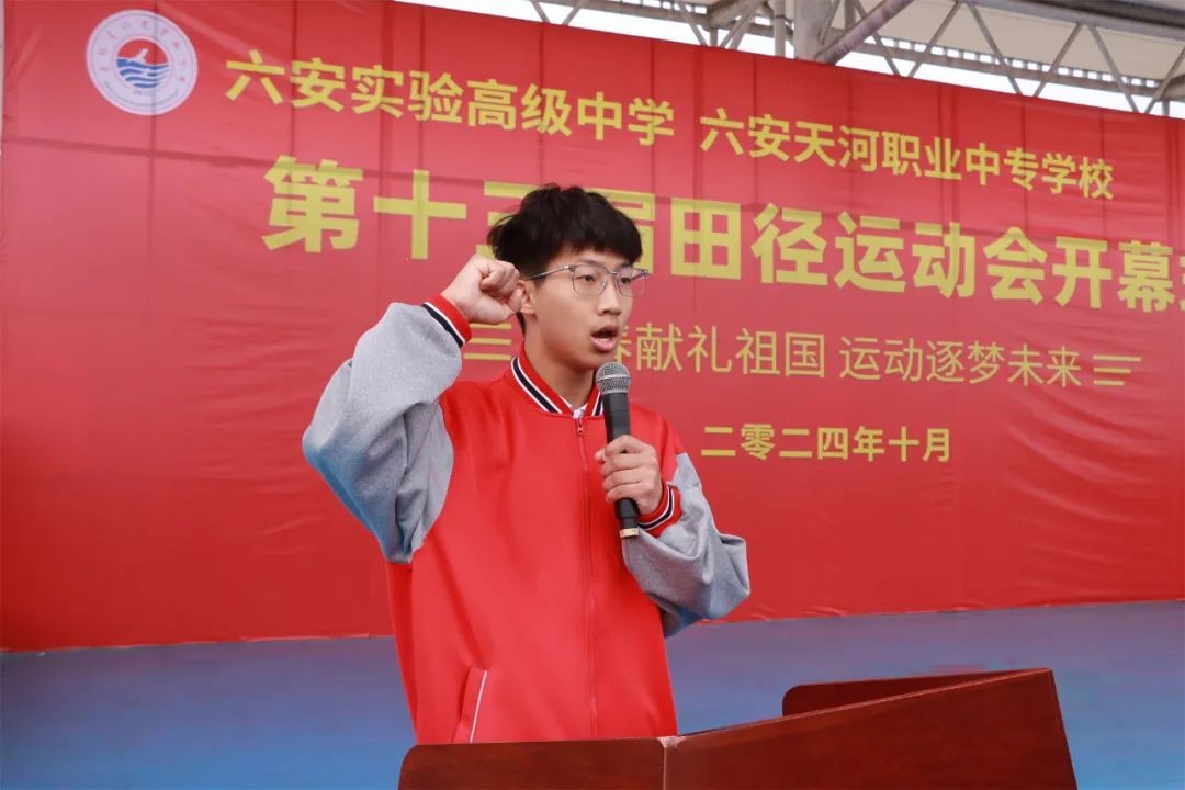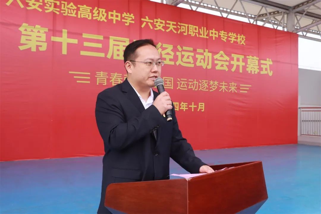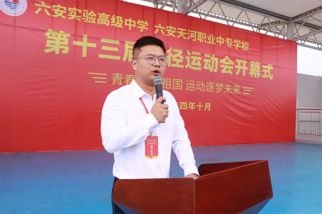 青春逢盛世,少年当有为。在新中国成立75周年之际,六安实验高级中学、六安天河职业中专学校第十三届田径运动会在新校区体育场盛大开幕。安徽天河教育集团董事长张运来携全体校级领导班子出席了开幕式。开幕式由新校区校团委书记、政教处主任汪鹏主持。