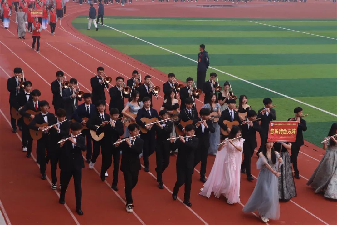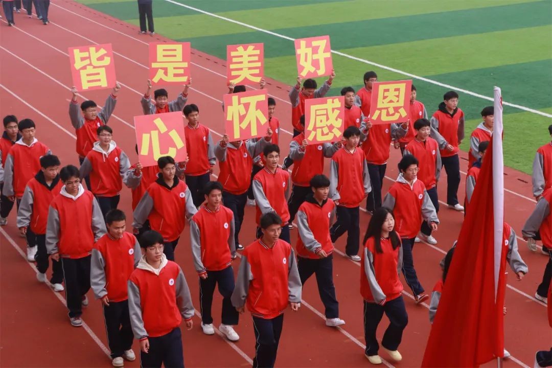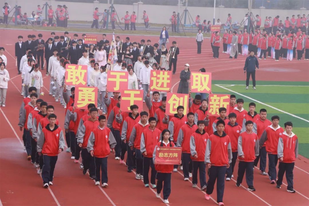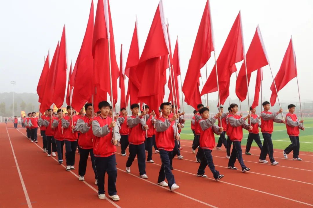 上午8时,伴随着铿锵有力的《运动员进行曲》,各方阵依次入场,拉开了本届运动会的序幕。首先入场的是由国旗、党旗、团旗和校旗组成的爱国方阵,表达了实验人赓续红色血脉,为党育人、为国育才的教育使命;紧接其后的是感恩方阵和励志方阵,表达了实验学子常怀感恩之心,常思拼搏之志,强国有我的青春誓言;音乐、美术、传媒、体育等特色方阵,展现了实验中学坚持五育并举,因材施教,“敦品励学,发展特长,提供最合适的教育选择”的办学理念。