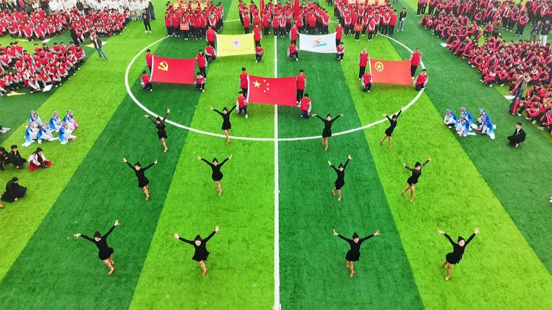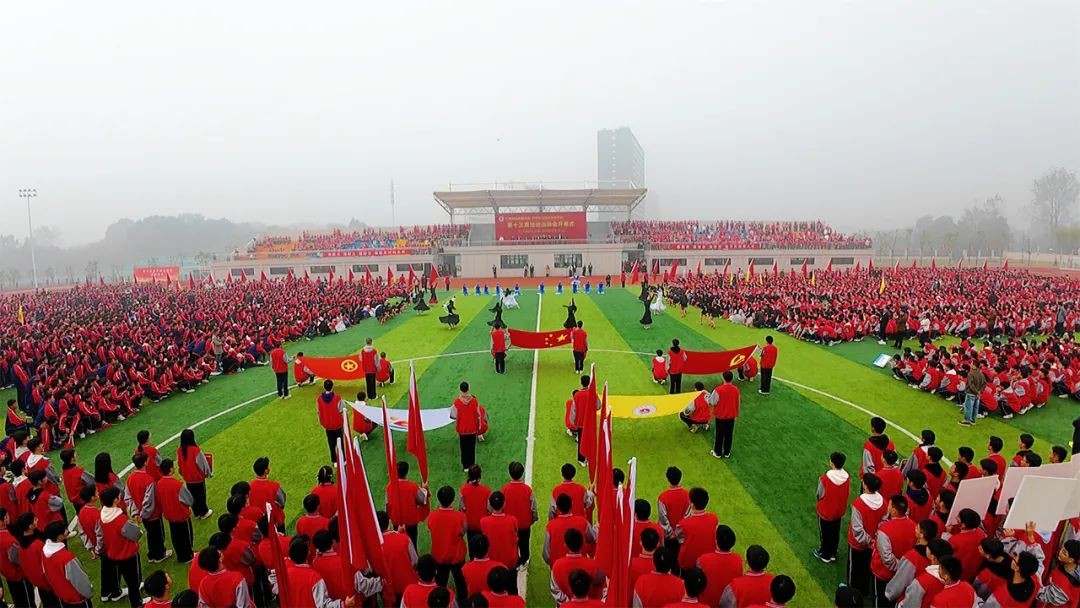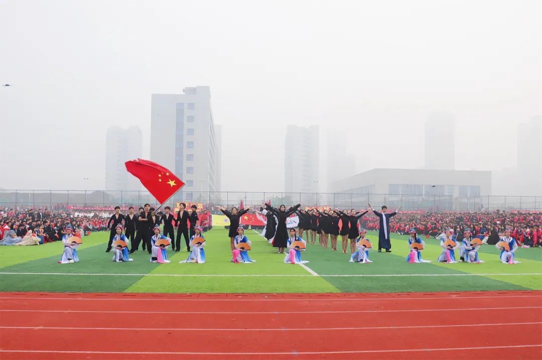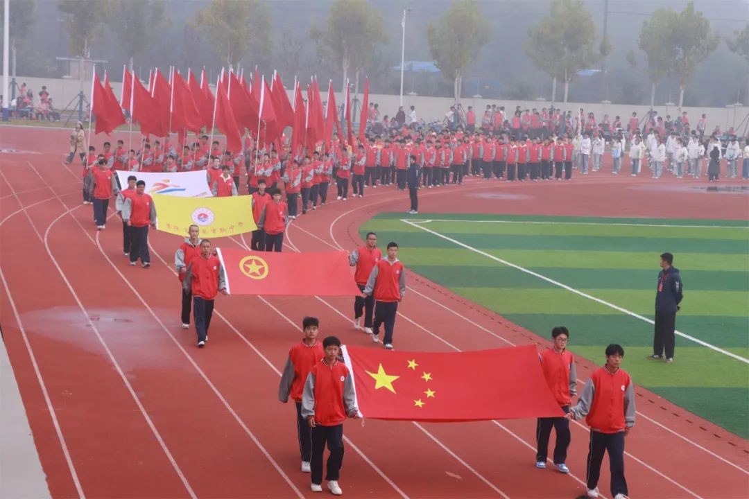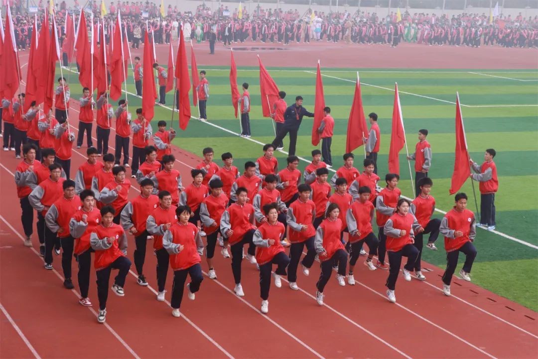 上午8时,伴随着铿锵有力的《运动员进行曲》,各方阵依次入场,拉开了本届运动会的序幕。首先入场的是由国旗、党旗、团旗和校旗组成的爱国方阵,表达了实验人赓续红色血脉,为党育人、为国育才的教育使命;紧接其后的是感恩方阵和励志方阵,表达了实验学子常怀感恩之心,常思拼搏之志,强国有我的青春誓言;音乐、美术、传媒、体育等特色方阵,展现了实验中学坚持五育并举,因材施教,“敦品励学,发展特长,提供最合适的教育选择”的办学理念。