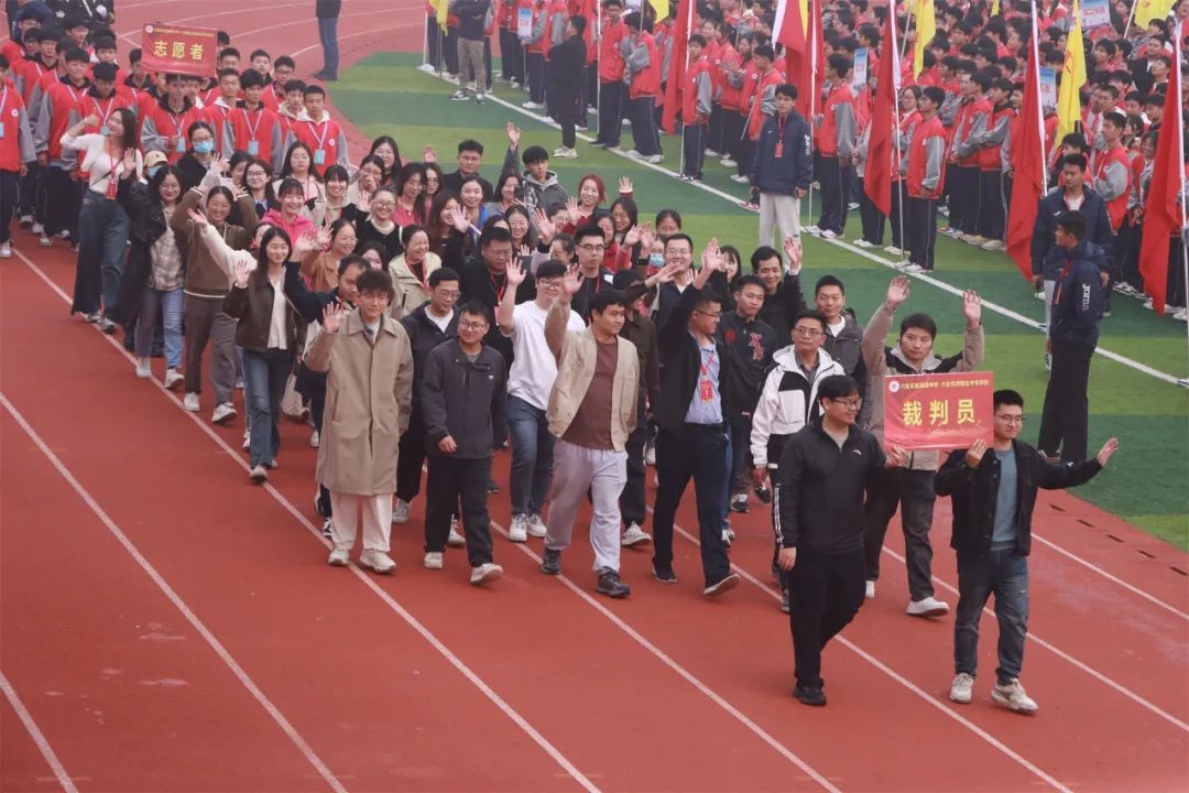 青春的气息如同初升的太阳,蓬勃的力量如同挥洒的阳光。各班级方阵、裁判员代表方阵和志愿者代表方阵依次入场,精神抖擞地走过主席台,接受检阅。同学们踏着坚定整齐的步伐,喊着嘹亮有力的口号,有的班级更是带来天马行空的创意“走秀”,展示着独属于青春的昂扬面貌与活力激情。