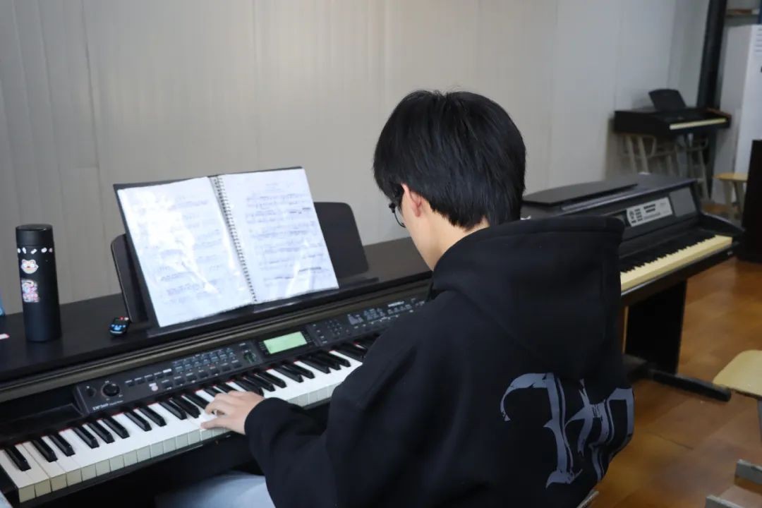 碳笔在纸张上刷刷作响 他们以梦想为行囊 以坚持为底色 勾画属于自己的璀璨青春 课上认真学唱 课下认真练习 唱出心中理想 弹出花样年华 行进间 他们舒展筋骨 哨声响 他们奋力奔跑 相信经过打磨和沉淀 终会与梦想相拥 踏出满路繁花