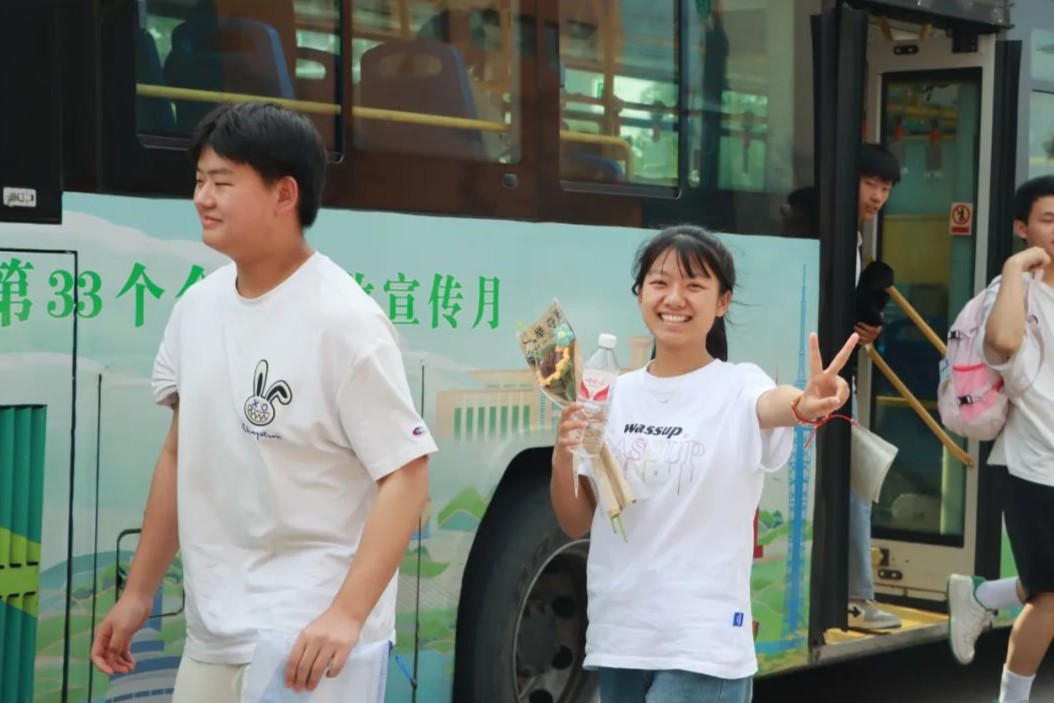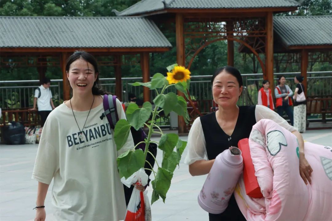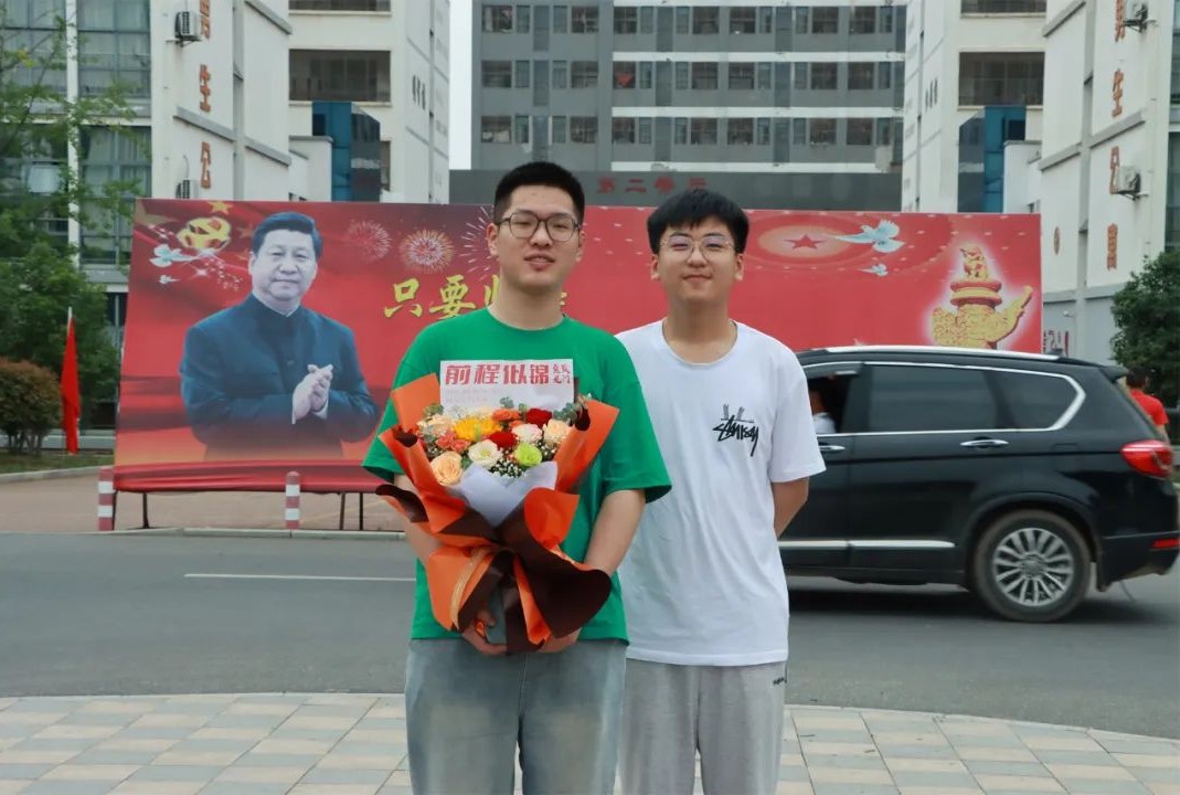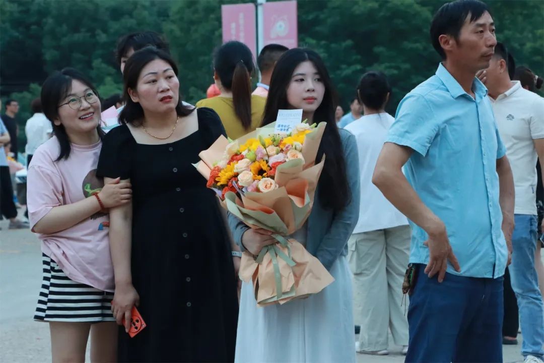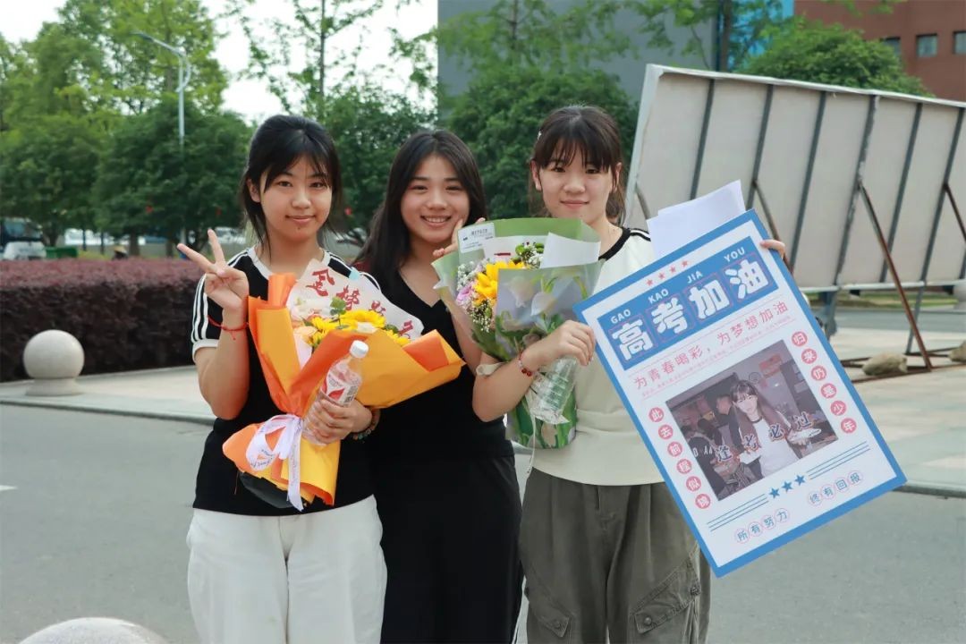 爱子心无尽,归家喜及辰。6月9日下午,学校门口早早站满了等待考生的家长们,他们手捧鲜花、礼物和横幅,翘首以盼,迎接考生凯旋。考生返校后,亲友们迫不及待地上前拥抱,送上鲜花和祝福,祝贺孩子们勇敢、顺利、圆满完成了青春的挑战。