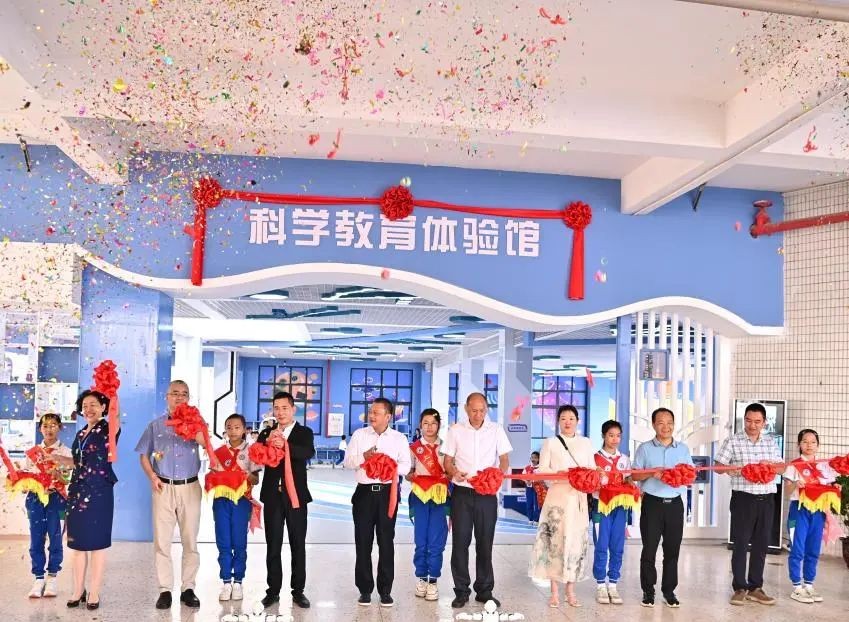 中共仙村镇党委书记袁成光、仙村镇镇长钟灼坤、仙村镇人大主席陈伟良、上海交大教育集团执行总裁陈笠、增城区科学技术协会副主席周照铭,以及慷慨捐赠的陈锦昌先生、吴桂玲女士与学校马利霞校长共同为体验馆剪彩,标志着该馆正式投入使用。
