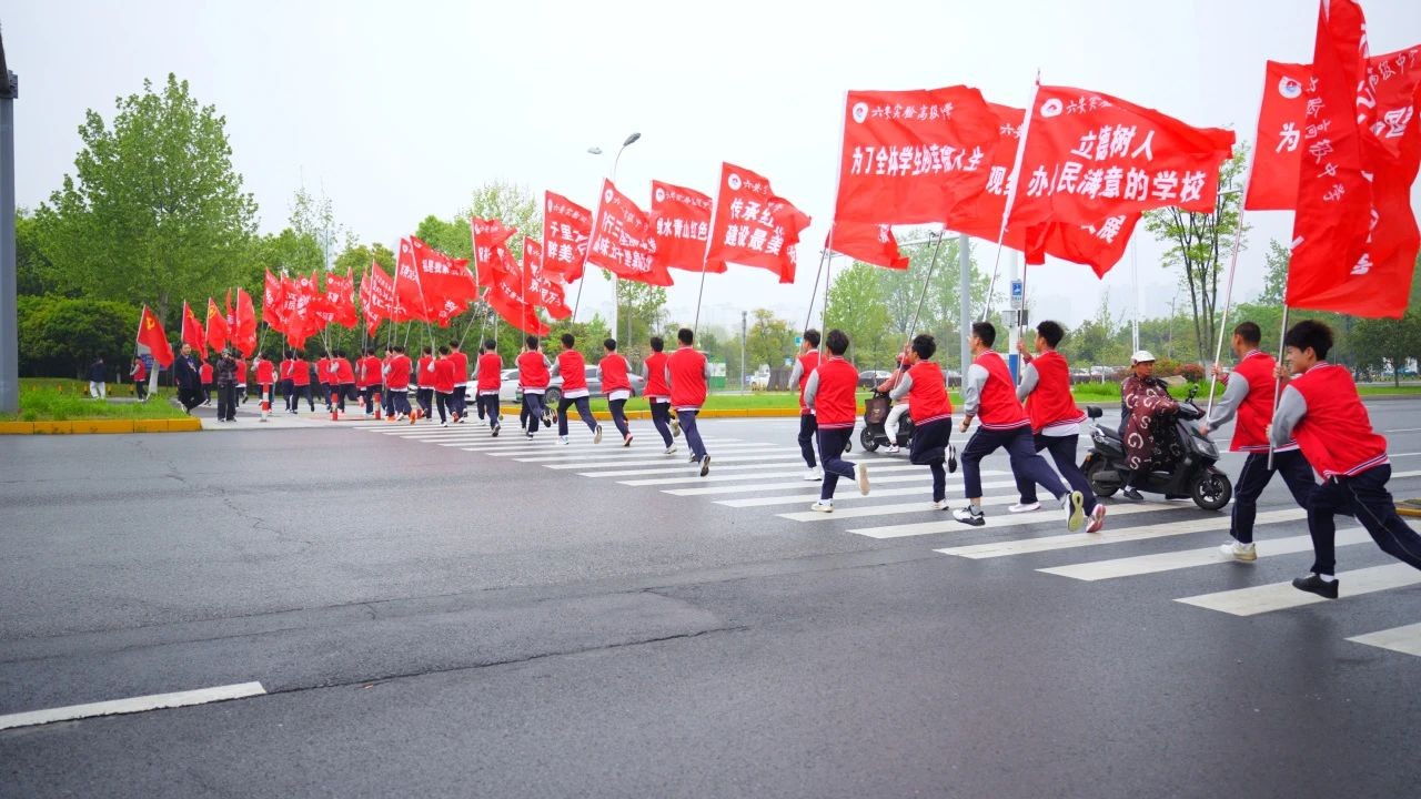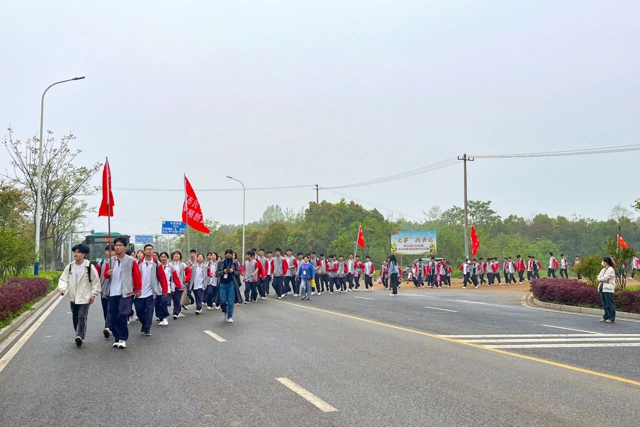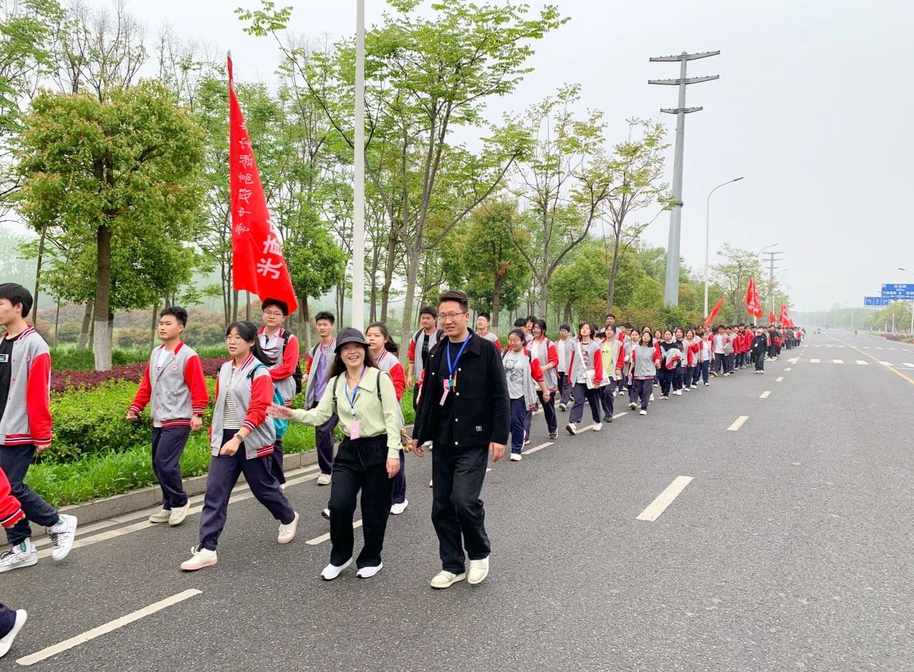 全体学生高举红旗、班旗,迎着和煦的春风,精神抖擞地踏上三十华里的征程,准备接受体力与毅力的双重考验,共赴一场春天的约会。