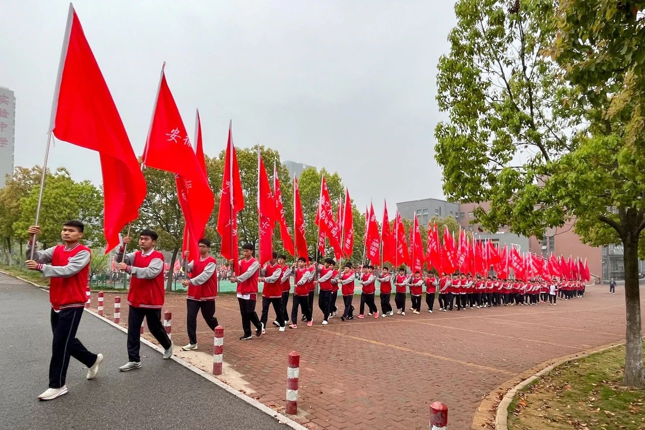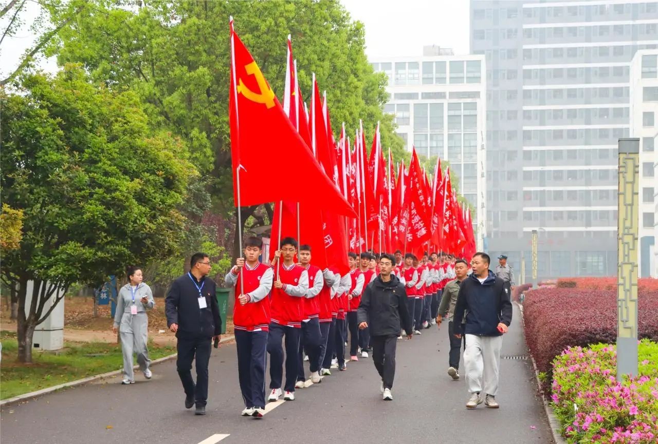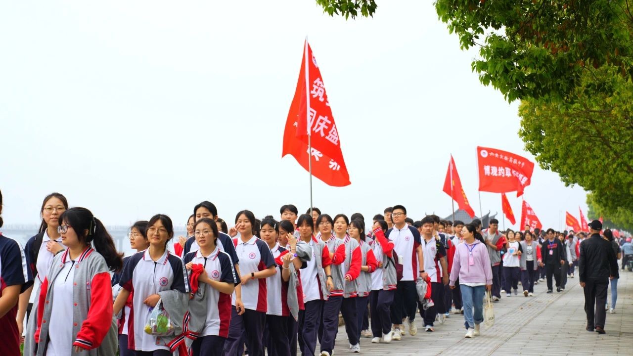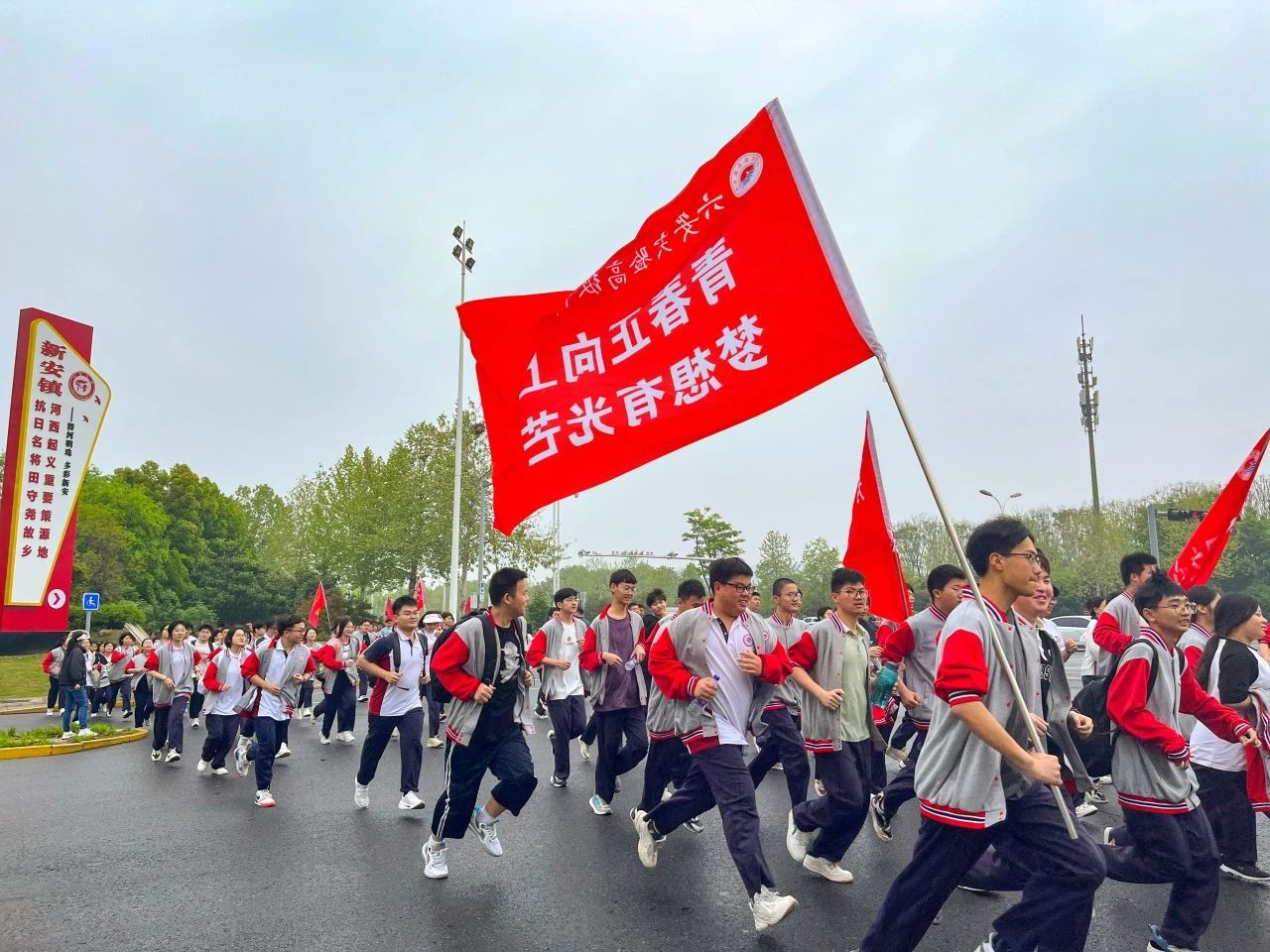 全体学生高举红旗、班旗,迎着和煦的春风,精神抖擞地踏上三十华里的征程,准备接受体力与毅力的双重考验,共赴一场春天的约会。