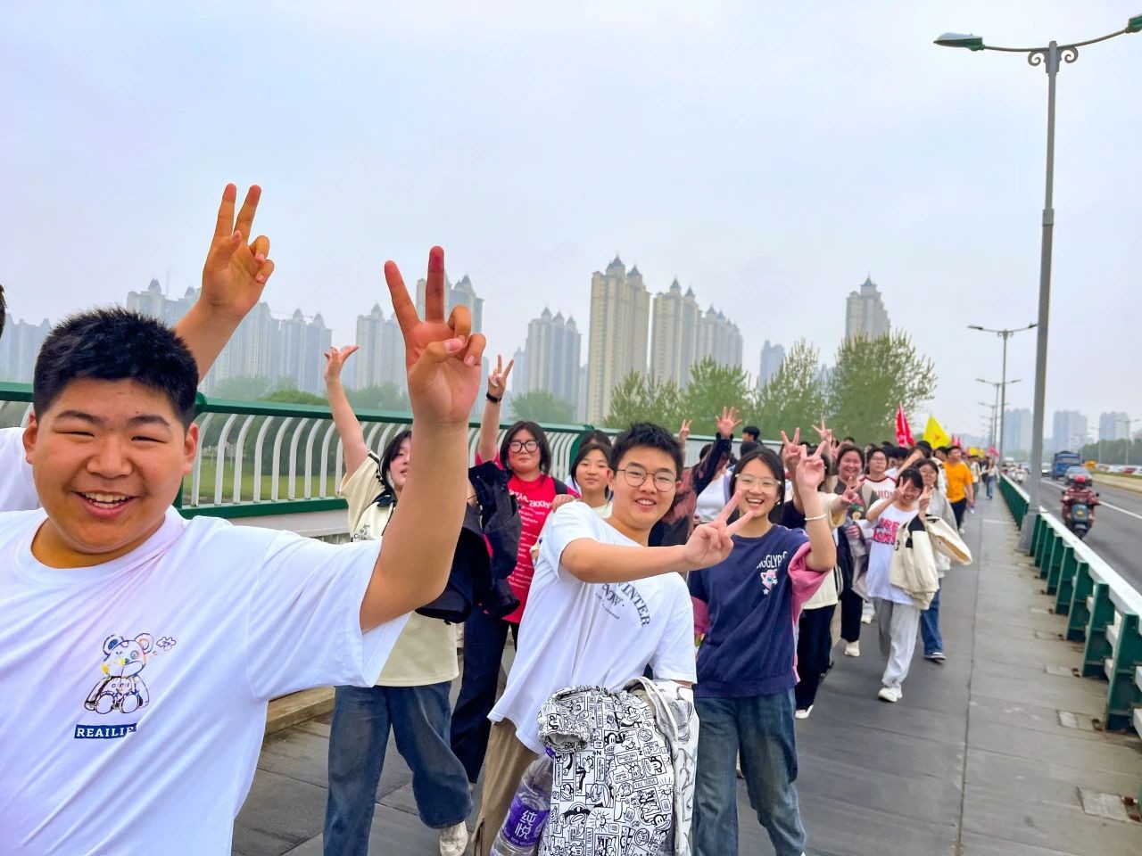 入眼的是风景,入心的是经历。在行进过程中,同学们争当“河小青”,用实际行动带动市民群众参与到环境保护中来。尽管大家满脸汗水,但依然凭着顽强的毅力坚持走下去。有的同学体力不支,同学们互相搀扶,继续前行;有的同学脚磨出了水泡,但仍然咬紧牙关,坚持走完全程。只因一个信念支撑着他们:挑战自我,突破极限,坚持到底就是胜利!经过四个多小时的跋涉,各班队伍陆续抵达学校,远足活动圆满成功!
