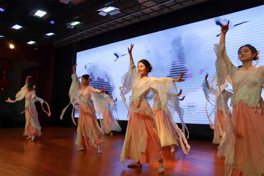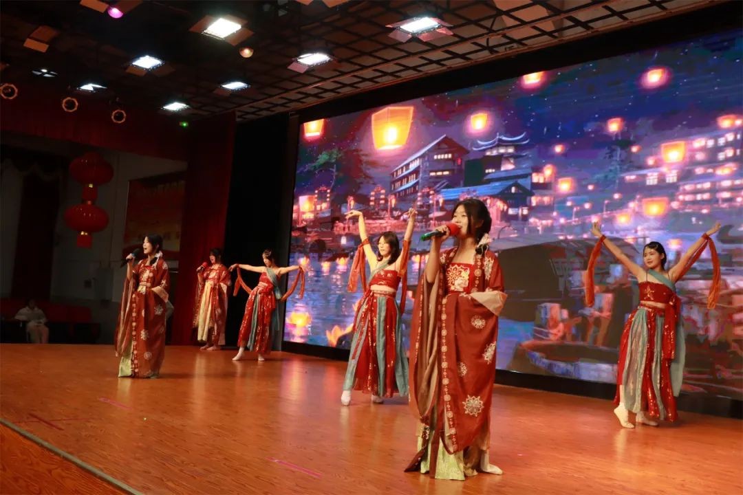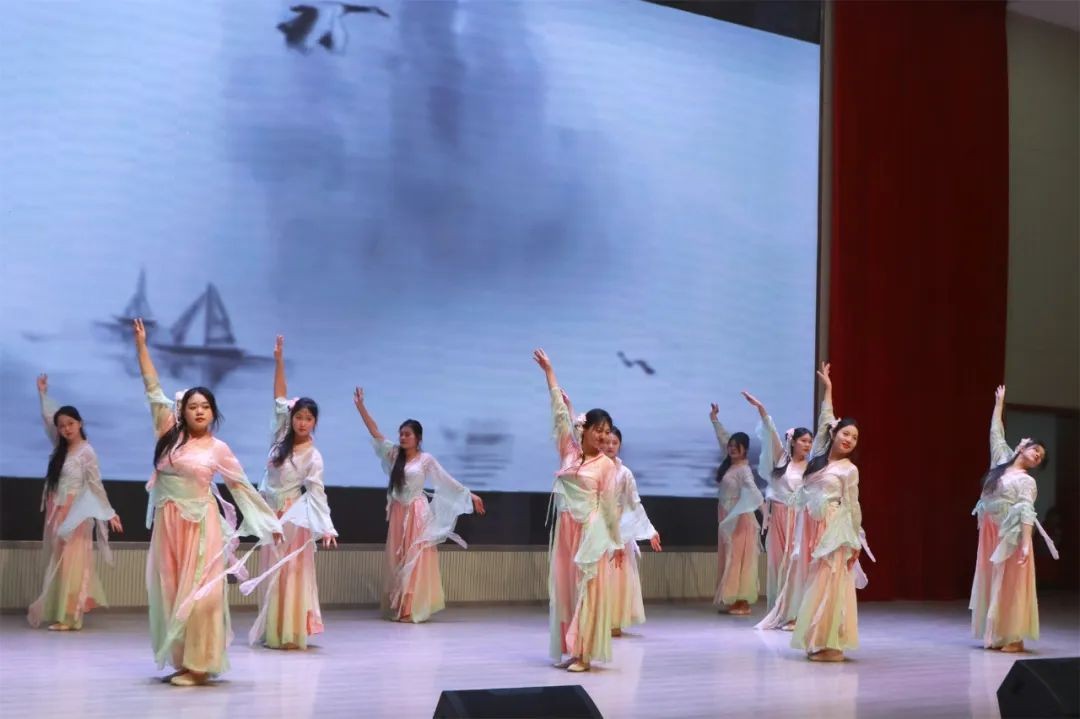 晚会在2343、2346班同学表演的舞蹈《中国舞》中拉开序幕。伴随着悠扬的古典音乐,舞者们衣袂飘飘、步伐轻盈,用婀娜多姿的舞姿展现了中华传统舞蹈的优雅与灵动,瞬间点燃了现场观众的热情。2449班同学表演的民族舞《傣族舞》将浓郁的民族风情搬上舞台,舞姿柔美灵动,仿佛春水荡漾,感染了全场观众。2437、2450、2442、2444班的节目歌舞《青玉案》则将诗歌之美与舞台表演巧妙结合,传统文化的诗意之韵在歌声与舞蹈中娓娓道来,美不胜收。