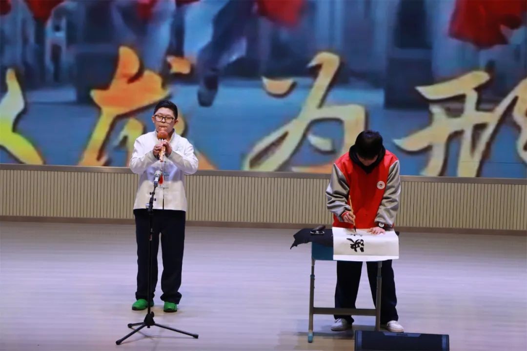 2308班同学带来的二胡独奏《赛马》以高超的演奏技艺再现了草原上赛马的激烈场景,琴声铿锵有力,极富感染力,让观众仿佛置身其中。2342、2362班的同学用葫芦丝与书法相结合形式的节目《龙的传人》,向在座的师生演绎了语言文化艺术的多种可能。