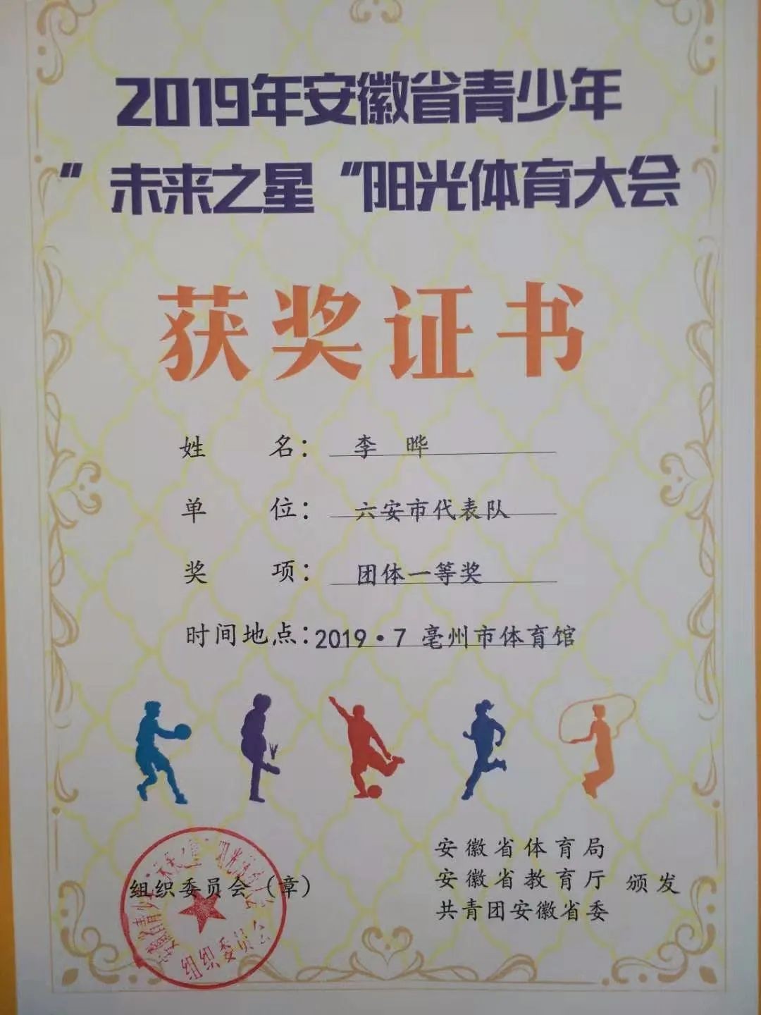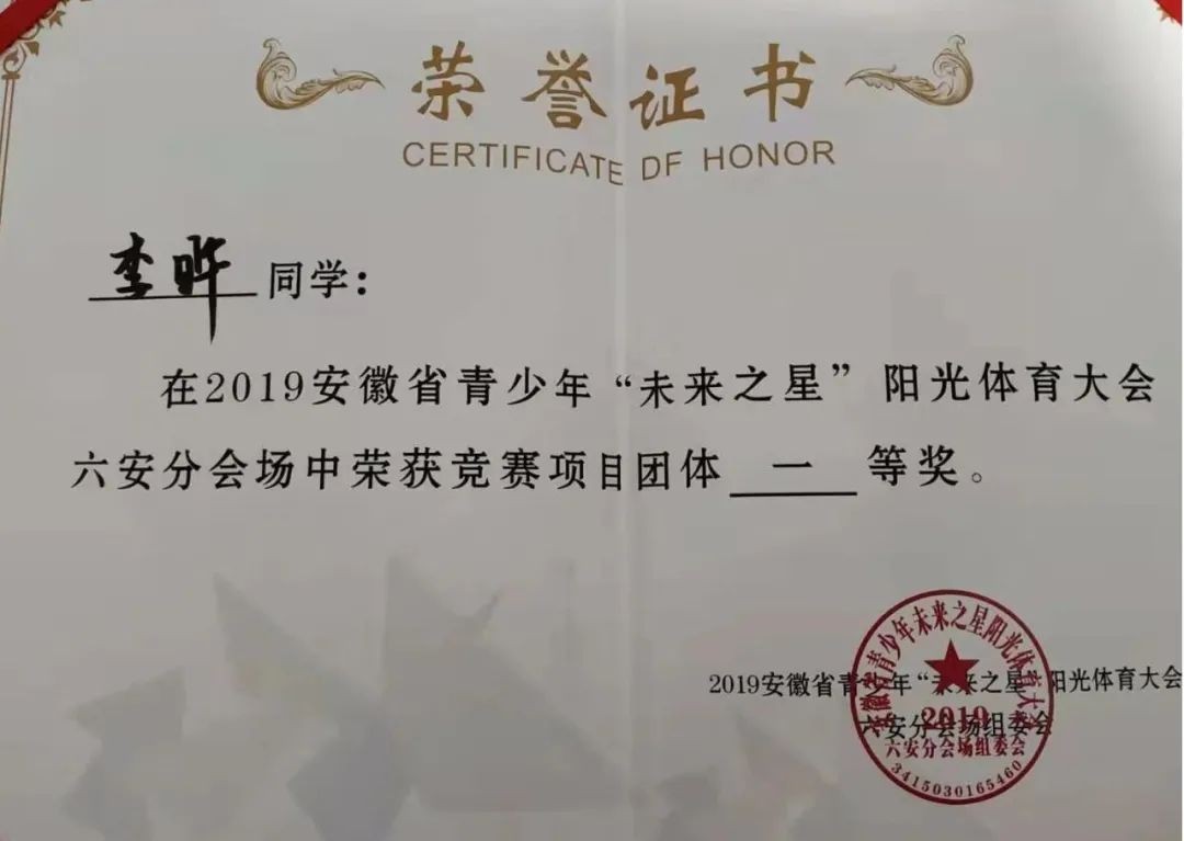 李晔,女,现就读于我校高一12班,为我校初中部2021届毕业生,德,智、体、美、劳全面发展,曾多次获得“三好学生”、“优秀学干”称号。在初中她是班长、学生会宣传部部长、校女足队长,在高中她是班长、语文课代表。学习上她是班级领头人,她兴趣广泛、热爱生活、开朗乐观,积极参加校内外的文体活动。精通多种乐器擅长绘画的她,是学校宣传小能手。热爱运动的她在各级运动会上多次斩获大奖,在校运动会上获得女子铅球、女子短跑第一名等好成绩,率校队荣获2019年六安市中小学校园足球联赛初中女子组冠军,2019年暑假期间,代表裕安区、六安市分获安徽省阳光体育大会六安分会一等奖和安徽省一等奖。