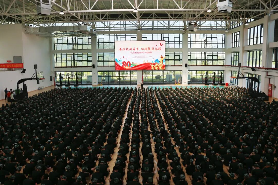 2025年9月3日,纪念中国人民抗日战争暨世界反法西斯战争胜利80周年大会在北京天安门广场隆重举行。为铭记历史、缅怀先烈、珍爱和平、开创未来,深刻感受国家富强、民族振兴的宏伟气象,激发全体师生的爱国热情和民族自豪感,我校组织全体高一新生在体育馆集中观看大会直播,其他年级组织学生在班级同步观看。