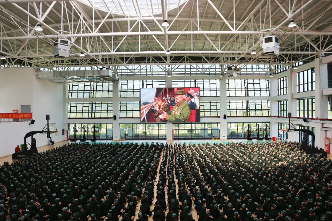 观看前,执行校长张兵为全体新生带来了一堂特殊的思政课。他以“青春是什么?爱国是什么?”开篇,深情讲述80年前抗战先烈用青春和生命捍卫民族尊严的英勇事迹。青春不仅是年华,更是责任;爱国不仅是口号,更是行动。他勉励同学们要铭记历史、珍惜来之不易的美好生活,将个人理想融入国家发展大局,用奋斗书写无悔青春。
