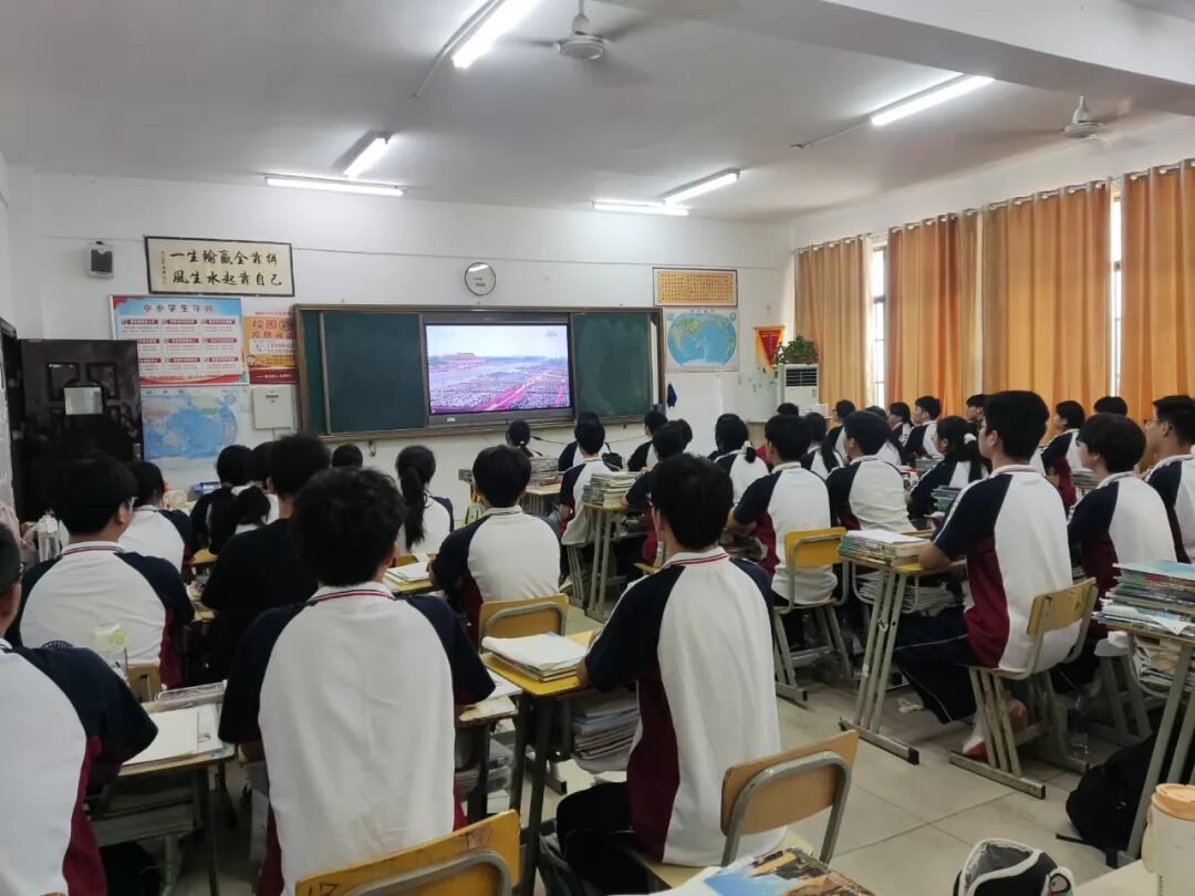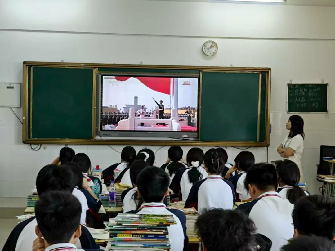 其他年级组织学生在班级观看了大会和阅兵式直播。在中国人民抗日战争暨世界反法西斯战争胜利80周年之际,通过集体观看的形式,让学生们在集体氛围中共同感受国家强盛的豪情,进一步增强国家安全意识和国防观念,激发强烈的民族自豪感,引导学生在铭记历史中锚定方向,在传承抗战精神中奋发前行。