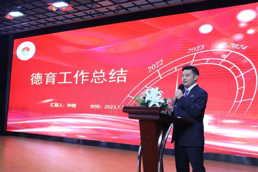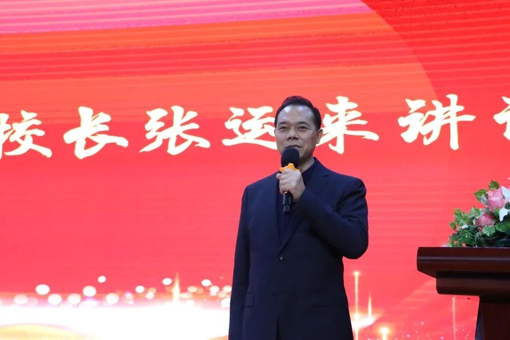 董事长、校长张运来作总结发言。他说,在过去的一年里,新校区项目建设稳步推进,学校各项事业蓬勃发展,离不开大家的辛苦努力和付出,在此表达真诚的感谢。全体教师要在加强竞争意识和学习能力两方面持续提升,希望全体同仁在今后的工作学习中,能守正创新、踔厉奋发,取得更大的进步和成绩。