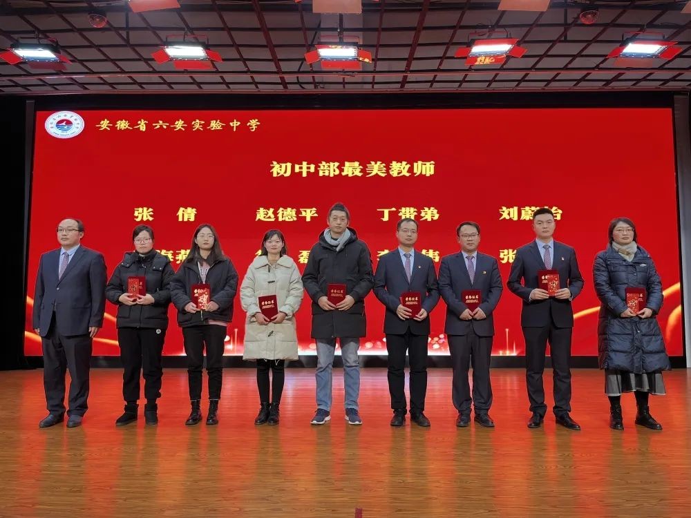 接下来就是激动人心的表彰环节。此次表彰共设置了“优秀共产党员”“优秀班主任”“青年教师基本功大赛获奖教师”“初中部最美教师”“高考获奖教师”“年终考核获奖教师”和“招生宣传获奖教师”等多个奖项。副董事长和全体领导为他们颁发证书、奖杯和奖金,并合影留念。同时学校也为每位教师准备了丰厚的新春贺礼,会场一片喜庆、祥和景象,祝愿大家新春快乐、阖家欢乐、万事如意!