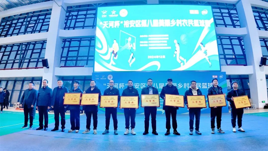 近日,由区教体局、区农业农村局主办,由我校承办的“天河杯”裕安区第八届美丽乡村农民篮球赛圆满落幕。经过8天、两个阶段共46场激烈角逐,由我校教职工作为主力班底的新安镇代表队荣获冠军!