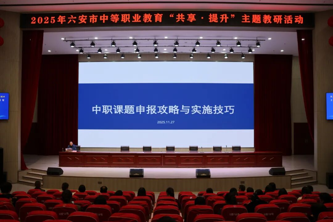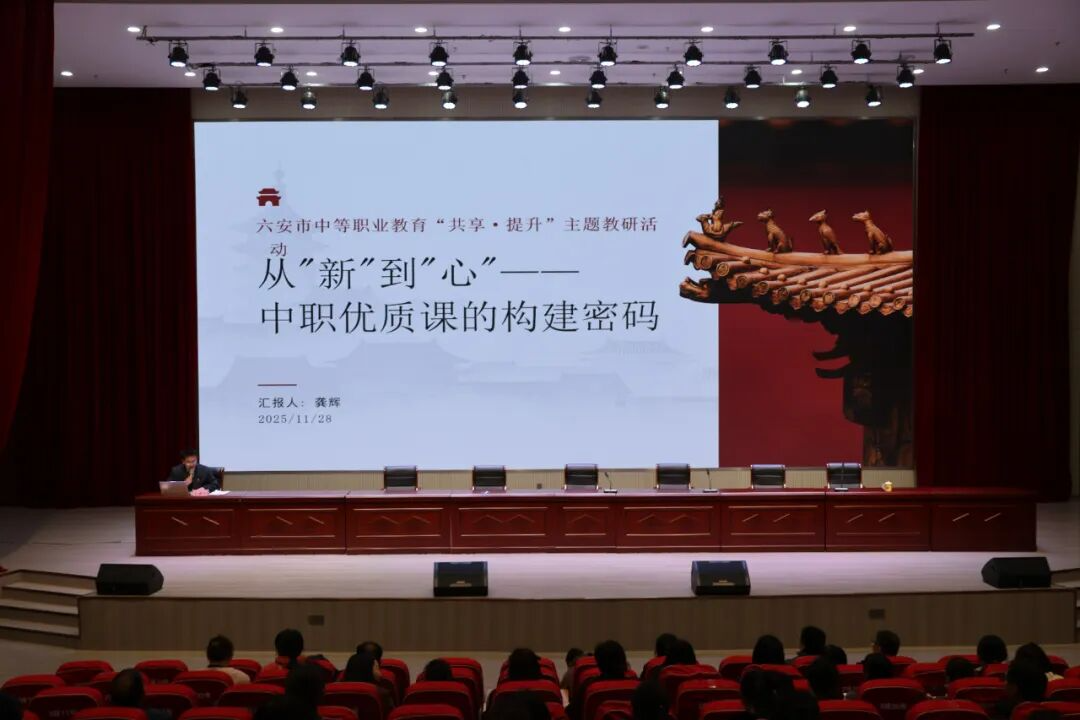 11月28日, 2025年六安市中等职业教育主题教研活动在我校圆满落幕。省教科院、市教体局相关领导以及全市各中职学校的四十余名骨干教师参加活动,围绕优质教学经验共享与教研能力提升展开了深入研讨。活动期间,专家讲座高屋建瓴,示范课例精彩绝伦,评课议课更是智慧交融成果颇丰,充分展现了我市职业教育改革的全新样态。