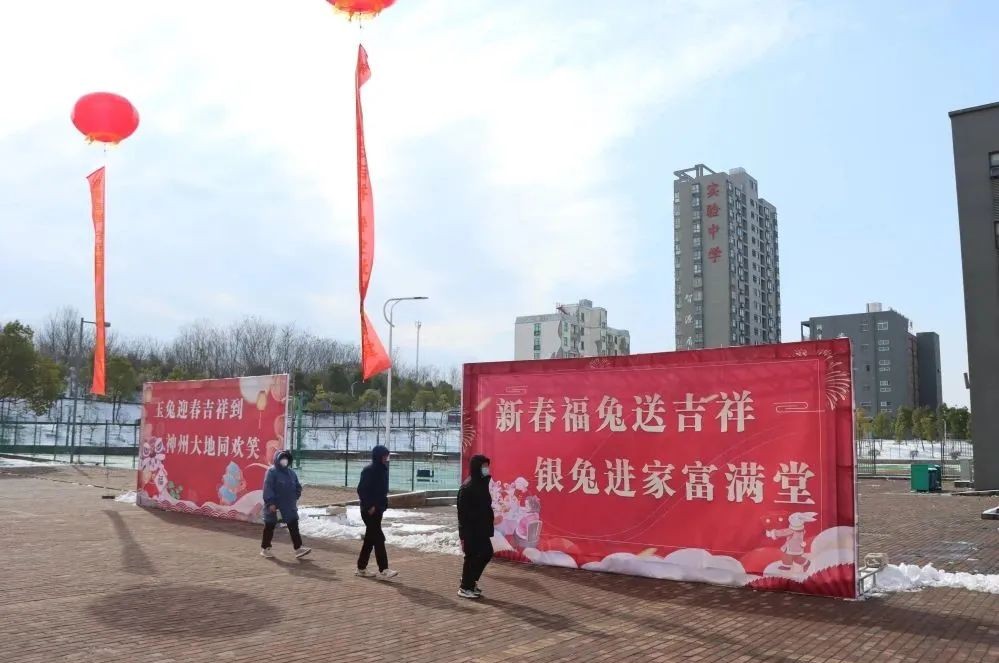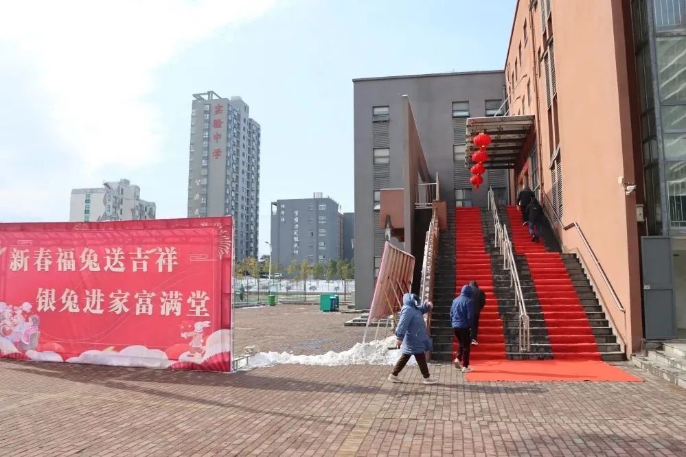 前日,一场瑞雪降临六安,实验中学银装素裹、年味十足。校园内处处可见的红灯笼、飘扬的红旗、喜庆的新春祝福展板和迎宾红毯……营造出浓厚的节日氛围,引得观演群众纷纷驻足拍照。