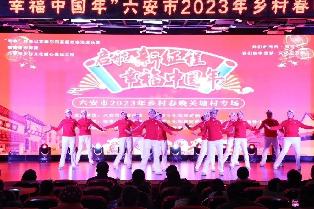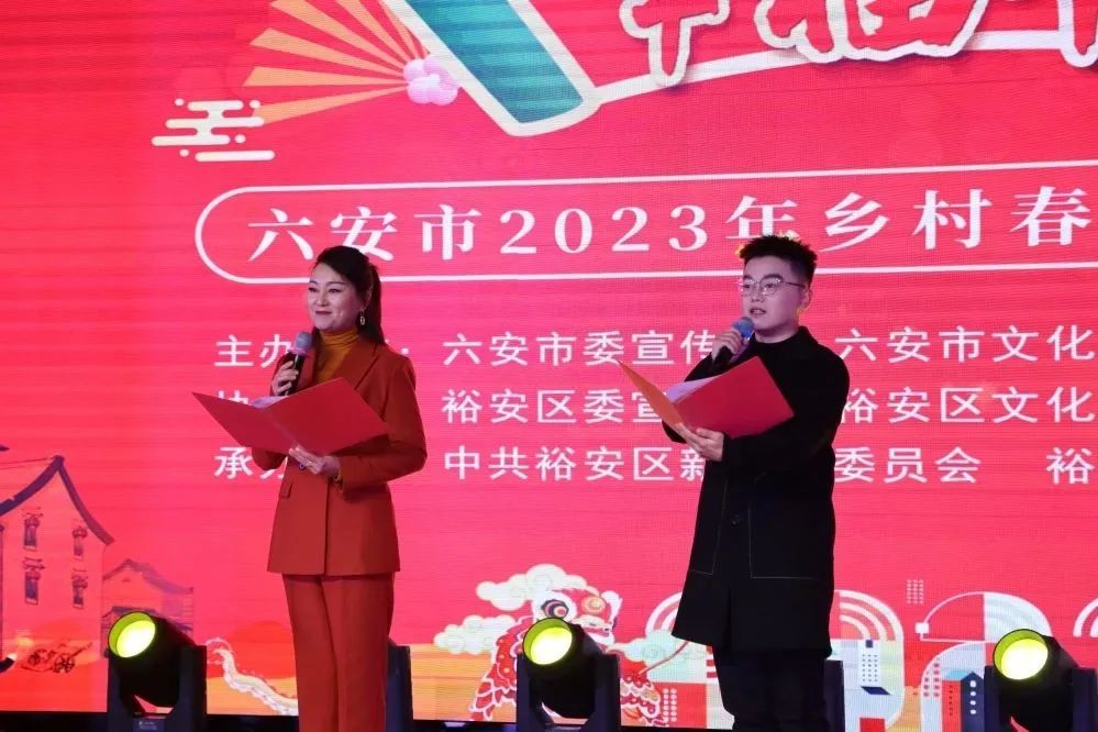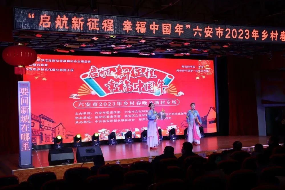 为迎接兔年新春的到来,进一步丰富农村基层群众的精神文化生活,2023年1月15日下午,由六安市委宣传部、六安市文化和旅游局主办,裕安区委宣传部等协办,一场以“启航新征程,幸福中国年”为主题的六安市2023年乡村春晚专场在六安实验中学精彩上演。市委宣传部常务副部长韩旭,市文旅局副局长周刚,区委常委、宣传部长、统战部长郑敏,副区长张健,区文旅局局长郑晓丽及新安镇党政领导等出席活动并与现场群众共同观看了演出。