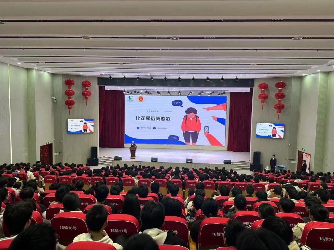 为进一步加强平安和谐校园建设,预防校园欺凌事件的发生,保障学生身心健康成长, 3月28日,在政教处的组织下我校开展了法治教育进校园活动,本次活动由我校法治副校长、裕安区人民检察院韩云静主任主讲。