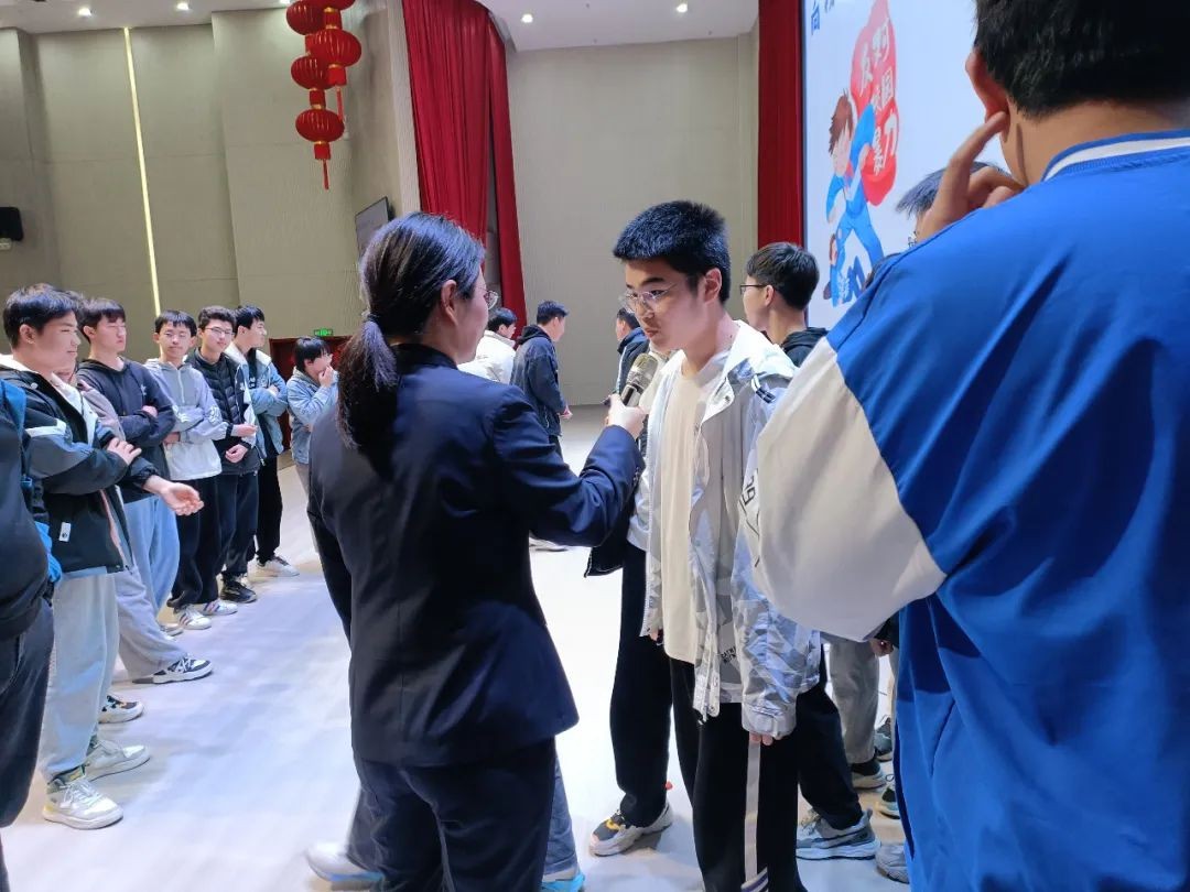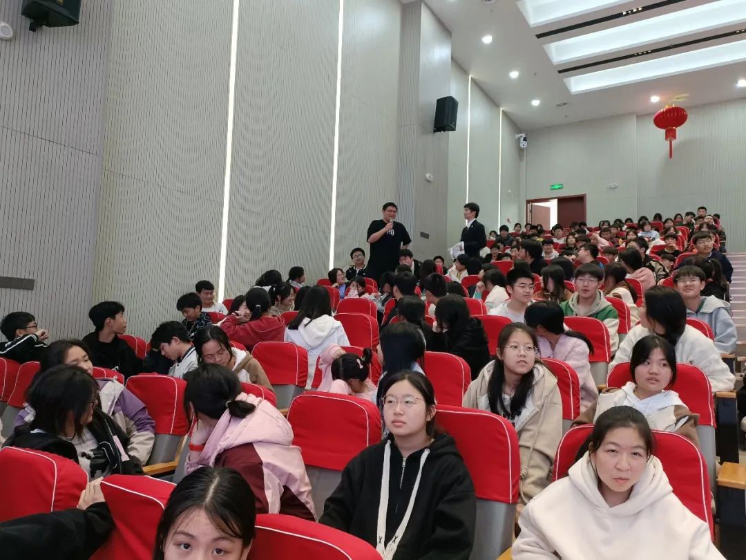 为了提高学生兴趣、活跃现场气氛,韩主任还为同学们设置了法律知识抢答环节,让同学们在互动中牢记法律知识,提升法治意识。工作人员还为积极互动的同学准备了丰富的纪念品,会场上同学们积极抢答,热情高涨。在最后的宣誓环节,韩校长还带领学生们玩起了飞花令游戏,挑选出同学们最认可的领读人。同学们全场起立、积极参与,将本次活动推向高潮。