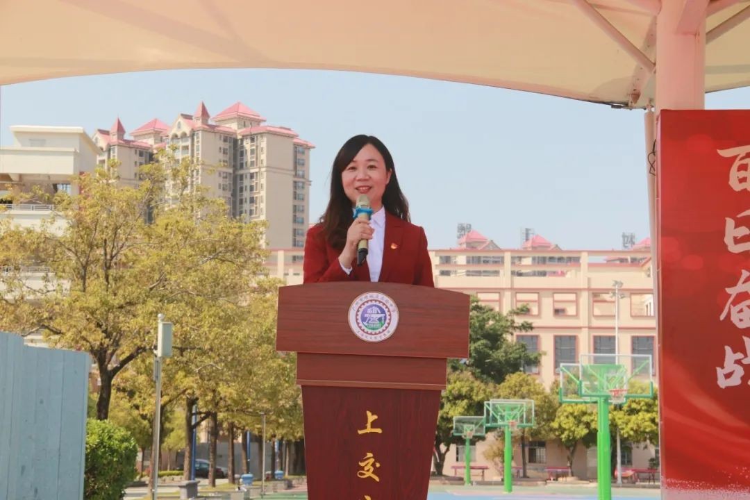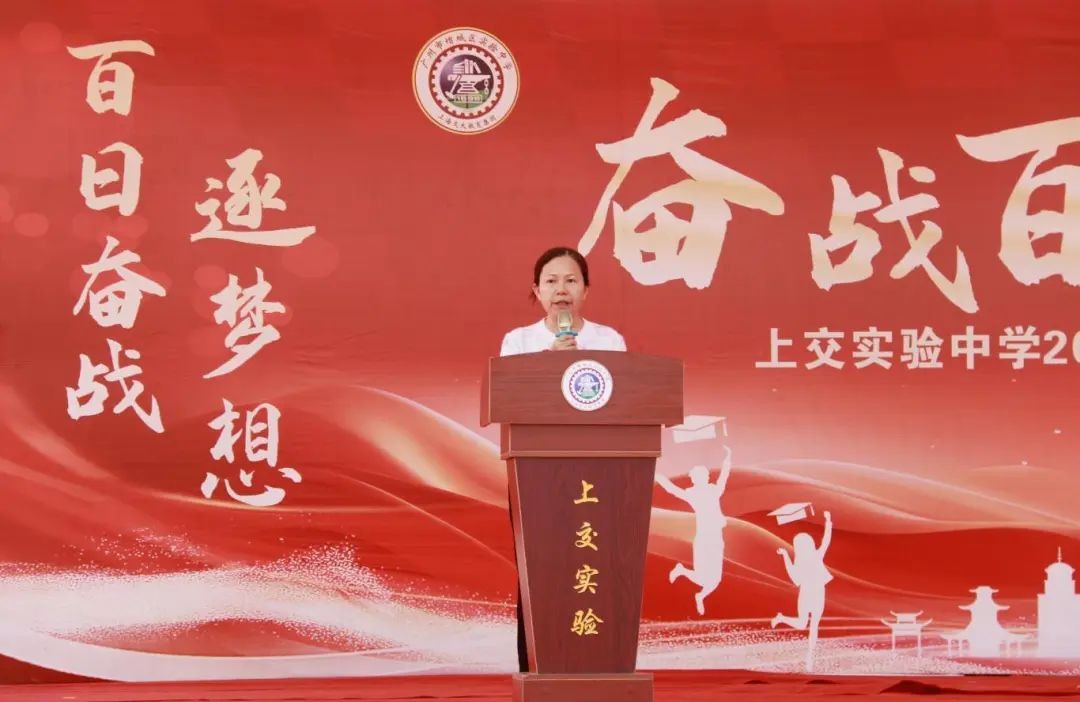 吴结芳女士作为家长代表发言,她说,在这紧张的备考阶段,你们不是一个人在战斗,学校的领导和老师们都在全力支持你们,家长们更是你们最坚实的后盾。她勉励孩子们在这最后的一百天里,以梦为马,用汗水浇灌希望,用拼搏铸就辉煌。