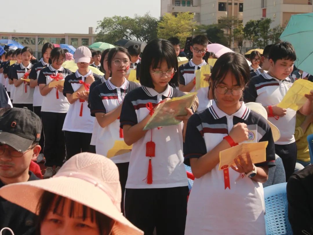 奋斗正当时,青春勇担当。在九年级(7)班李欣贤同学的领誓下,全体学子以铿锵誓言回应中考召唤。整齐举起的手臂、专注坚毅的目光,彰显着他们无畏挑战的决心。