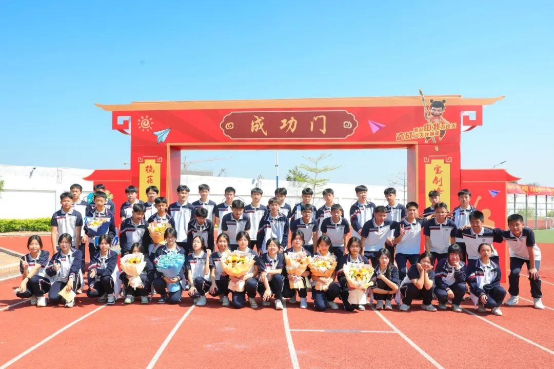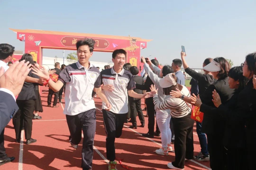 四列纵队如离弦之箭,在战歌激荡中奔向"成功门"。少年们与老师们击掌相庆,每一声脆响都是力量的传递,每一次相视都是信念的共鸣。