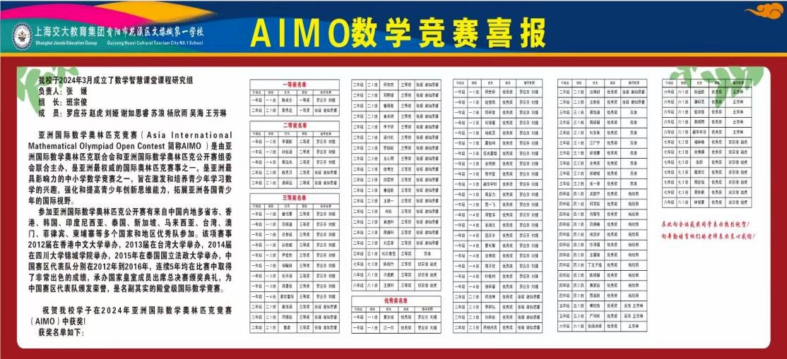 啦啦操作为学校体育运动项目之一,以培养学生爱运动、爱生活、爱学习,提升学生身体素质为目的。2023年10月16日,上海交大教育集团贵阳市花溪区文旅城第一学校啦啦操队经过前期扎实认真的编排和训练,在贵阳市花溪区首届“花漾杯”体育、艺术活动之第七届中小学啦啦操比赛中,学校第一套规定套路操获全场第一名,两套操相加最终荣获团体第三名的好成绩。