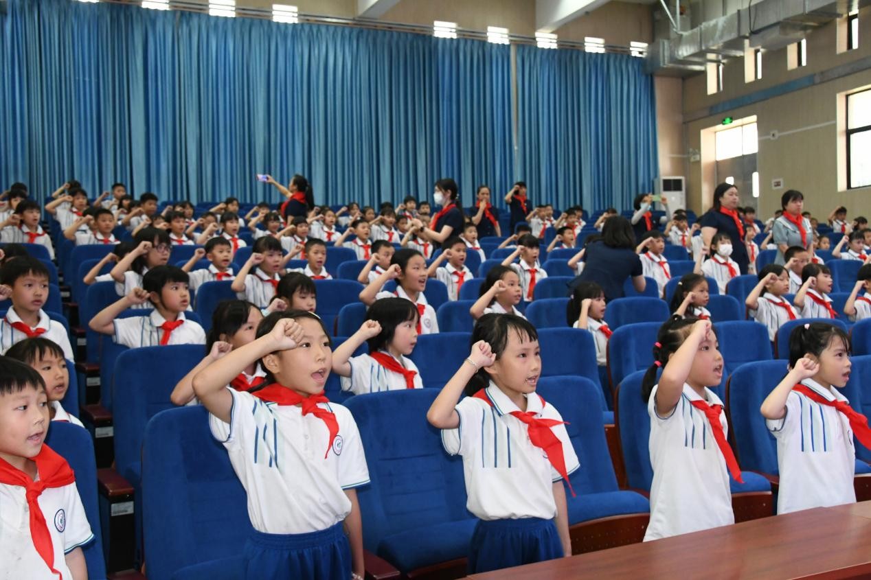 5月30日下午,在这个特别的时刻,我校一年级169名优秀的一年级学生正式加入了中国少年先锋队,成为了光荣的少先队员。他们在队旗下庄严宣誓,将继承和发扬少先队的光荣传统,努力学习,为祖国的未来贡献自己的力量。这一仪式不仅是对孩子们成长的肯定,也是对他们未来的期许。相信佩戴红领巾的他们,一定会从小学先锋,长大做先锋,为胸前飘扬的红领巾增光添彩。