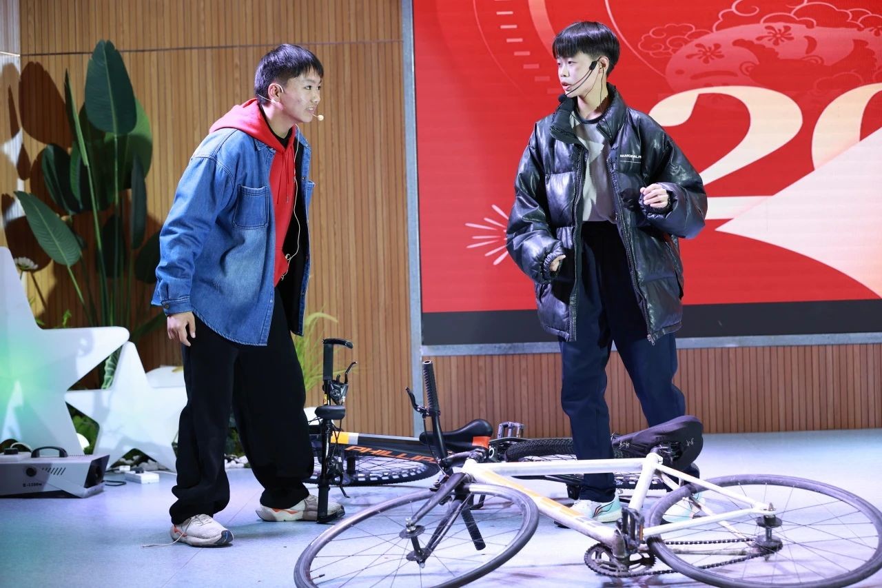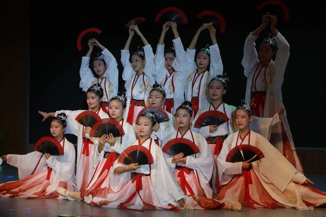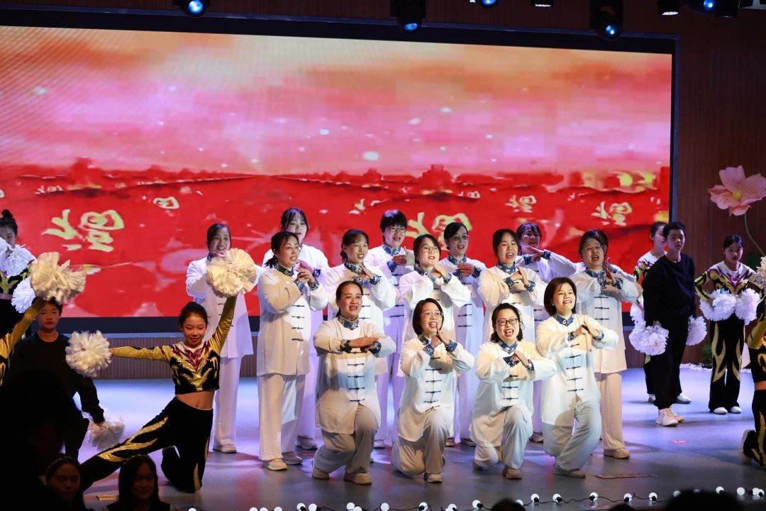 退休教师沈珊老师携手张慧强老师、周蓉学姐带来古琴演奏《流水》,曼妙的舞姿和着悠扬的琴声,如潺潺溪流,诉说岁月静好;林小燕老师联合三位主持人,带来诗朗诵《新年新期盼》,声情并茂,表达对未来的美好憧憬;校合唱团、校健美操社团与教师代表共同呈现歌舞串烧《上春山》《健康到到令》及八段锦表演,活力四射,展现师生风采。各式才艺,百花齐放,共绘校园画卷。