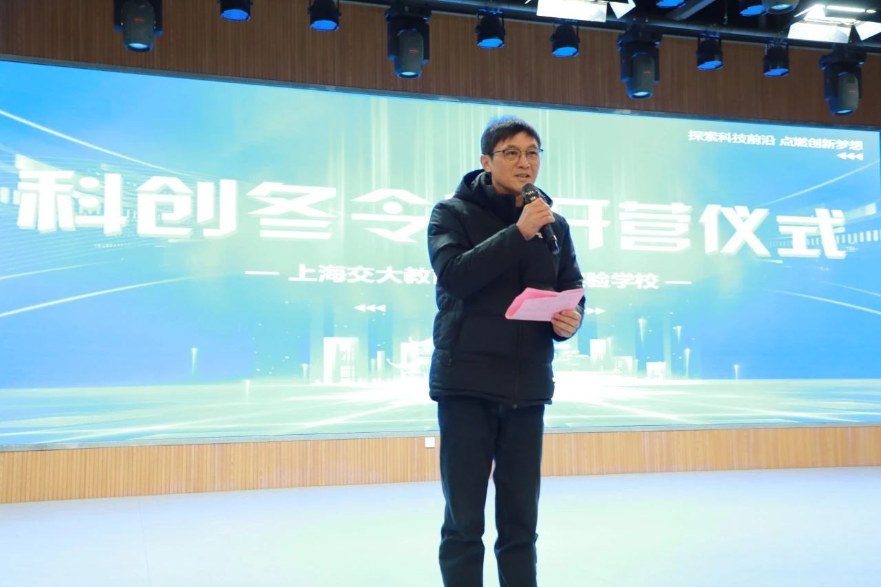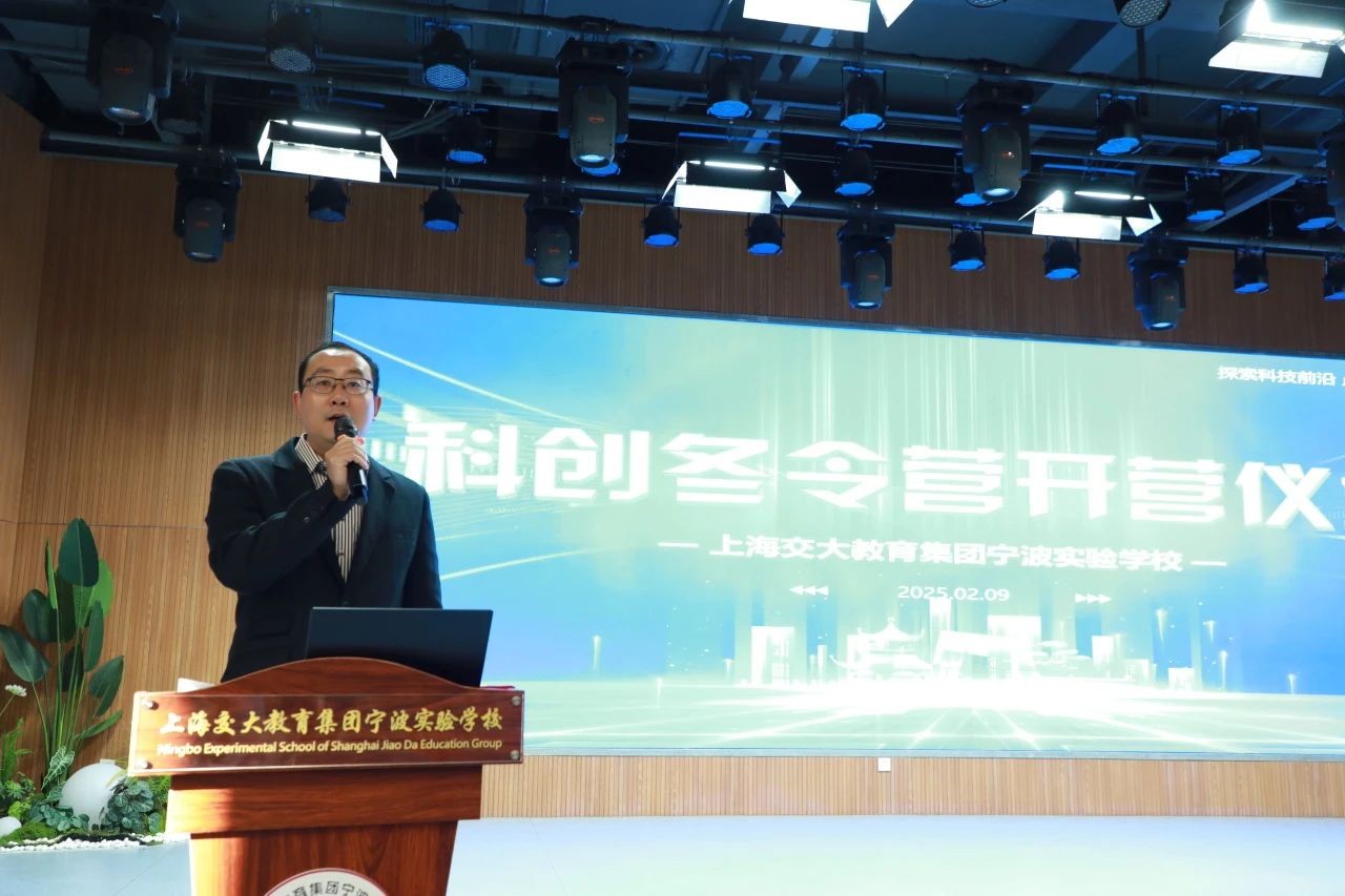 在开营仪式上,吴学录校长介绍了江北区政府、区教育局领导对我校科创工作的全方位关心和支持,以及目前已取得的成绩。同时,吴校长对江北区教育局教研室吴利文主任、上海交大教育集团专家以及同学们、家长们的到来表示热烈欢迎。吴校长从春晚的机器人到Deepseek的亮相,鼓励同学们燃起科创热情,跟上时代步伐。他期待这次冬令营能成为同学们“破圈成长”的舞台,在“实践出真知”的过程中,不断“迭代自我”,在探索中“解锁潜能”,开启这场科创之旅的精彩序幕,为未来“赋能”。