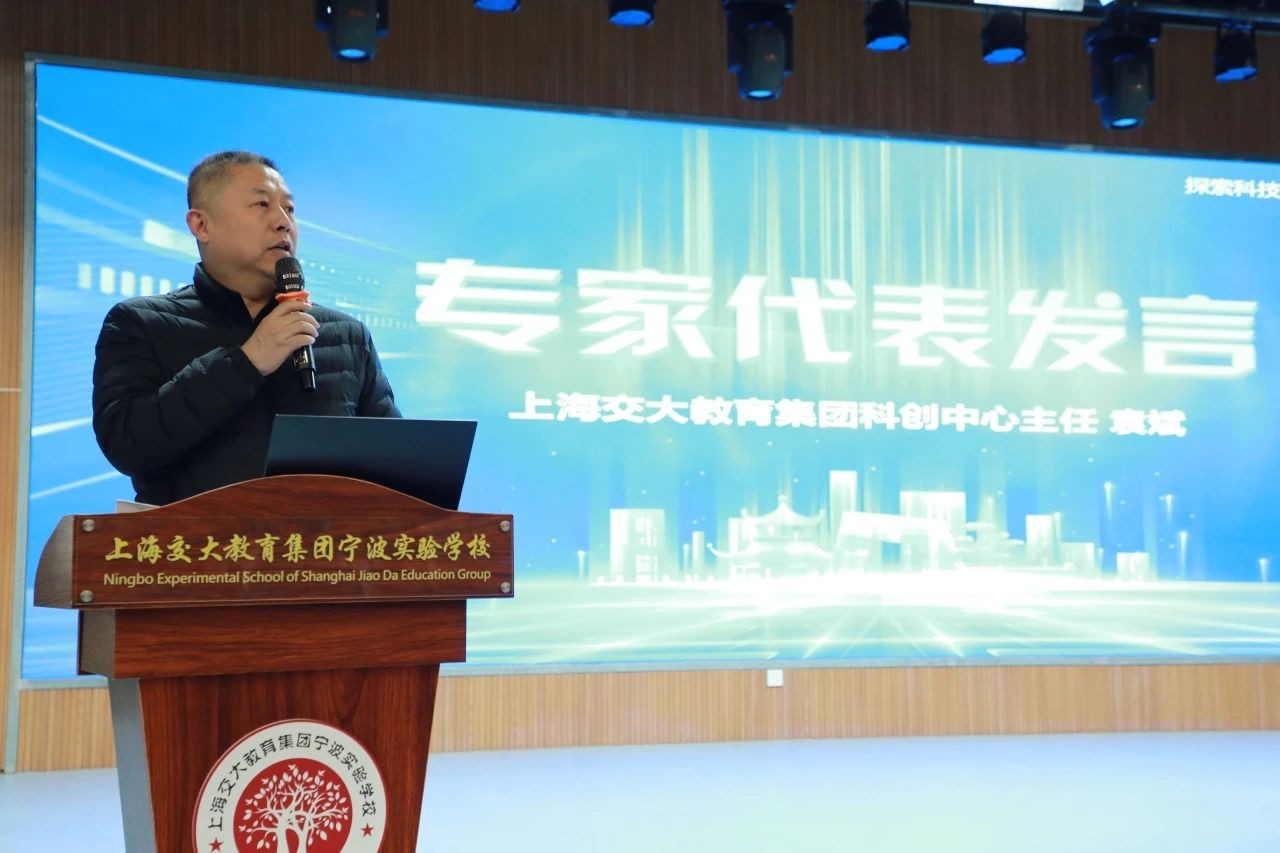 上海交大教育集团科创中心袁斌主任介绍,上海交大教育集团依托上海交通大学雄厚的教学和科研资源,一直扎实耕耘于大中小学科创教育领域,积累了丰富的科创课程研发和竞赛指导经验,在全国多所学校有序开设多种前沿的科创课程,注重引导学生突破传统思维局限,培育解决复杂问题的能力,指导培养的学生在各级科创竞赛中屡获佳绩。袁斌老师期望同学们牢牢把握每一次学习实践的机会,提升素养,收获成长,为未来的科创之路筑牢根基。
