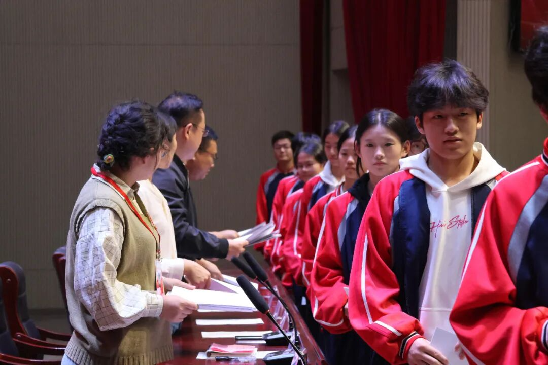 随后,台上全体领导将精心编制的学员手册发放给入团积极分子。手册内容涵盖了团的历史、团章知识、团员义务与权利以及培训课程安排等重要内容,是同学们此次培训的重要学习资料。