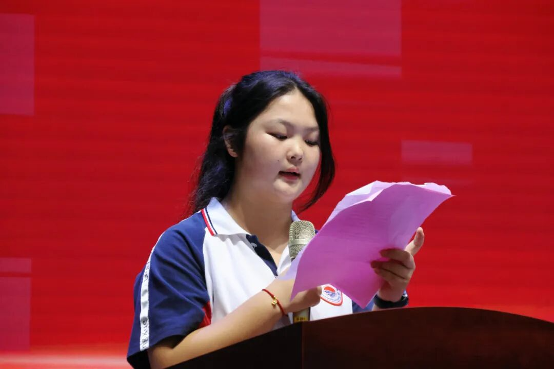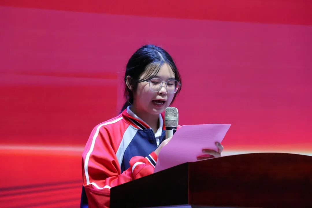 2415班的陈爱郡同学作为优秀团员代表上台发言。她结合自己的成长经历,分享了成为共青团员后的收获与体会。她鼓励各位入团积极分子要坚定理想信念,树立正确的世界观、人生观和价值观,在学习和生活中勇于担当、积极进取,以实际行动向团组织靠拢。