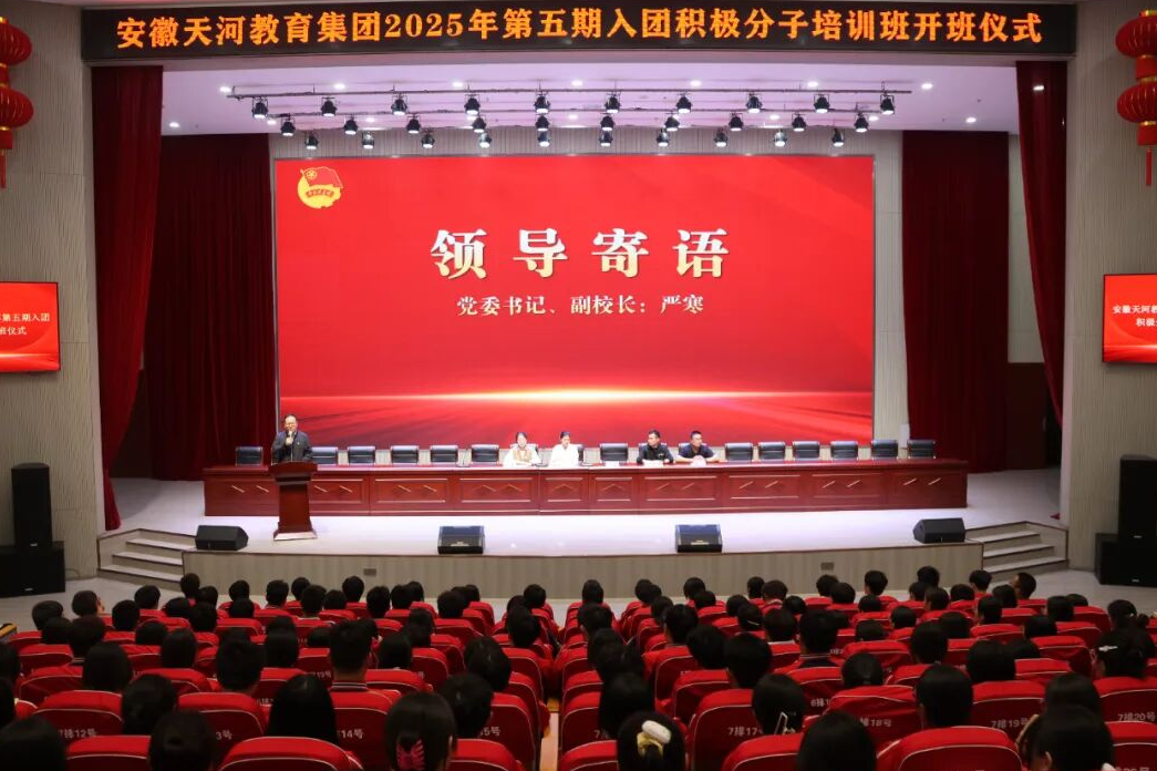 为进一步加强共青团组织建设,为团组织注入新鲜血液,引导青年学生坚定理想信念、提升思想觉悟,六安实验高级中学、六安天河职业中专学校于10月13日晚在新校区报告厅联合举行2025年第五期入团积极分子培训班开班仪式。安徽天河教育集团党委书记、副校长严寒,新老校区团委书记、团委委员及全体入团积极分子共同参加了此次活动,开班式由新校区团委书记潘生娓主持。