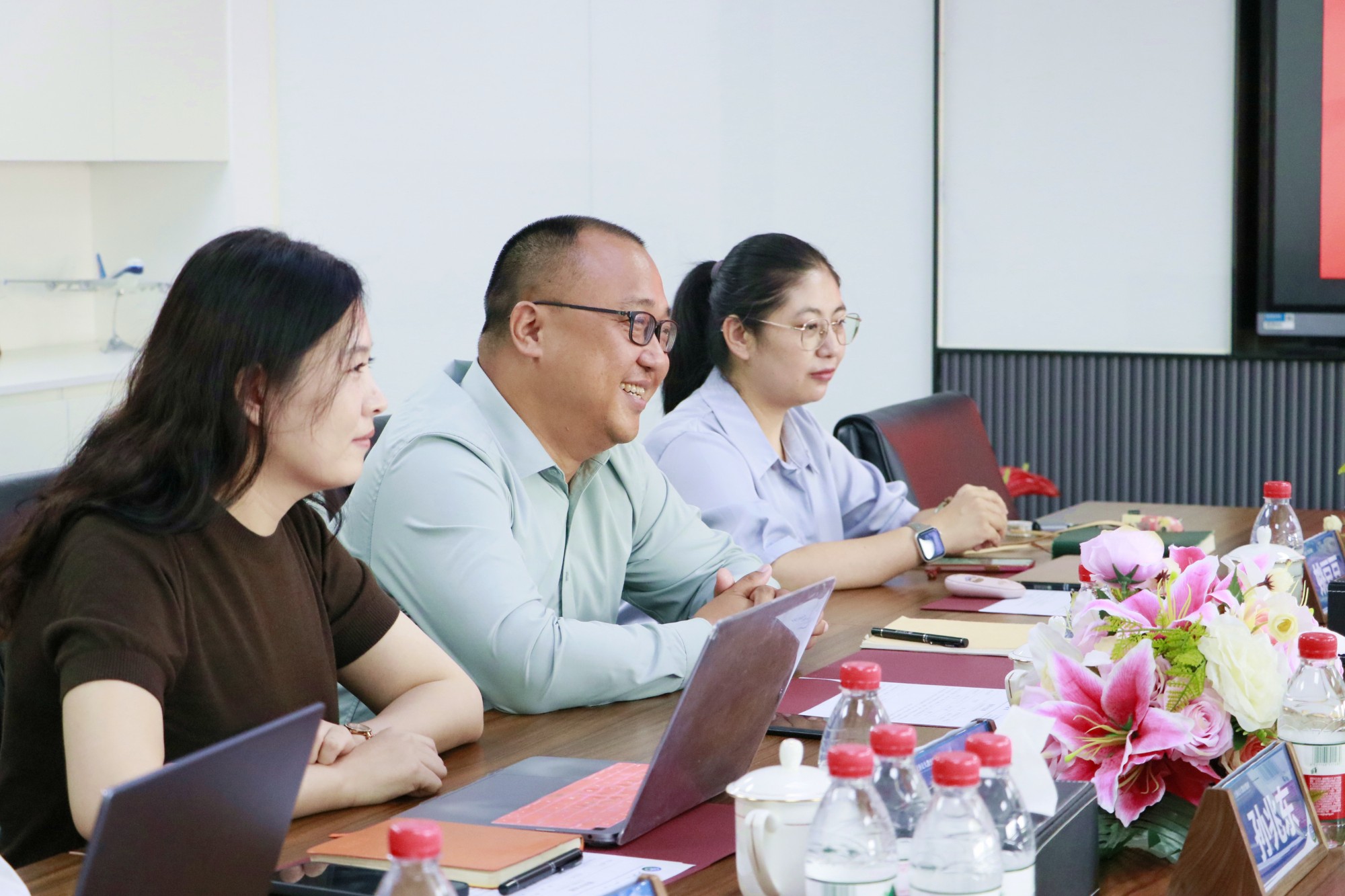 上海交大教育集团联席总裁王永辉、企业人才发展研究院秘书长姜晓蕾以及项目负责经理姚豆豆、王慧等团队成员共同出席。双方就2024 年企业标杆学习平台的工作规划及当前企业申报情况进行了座谈交流。