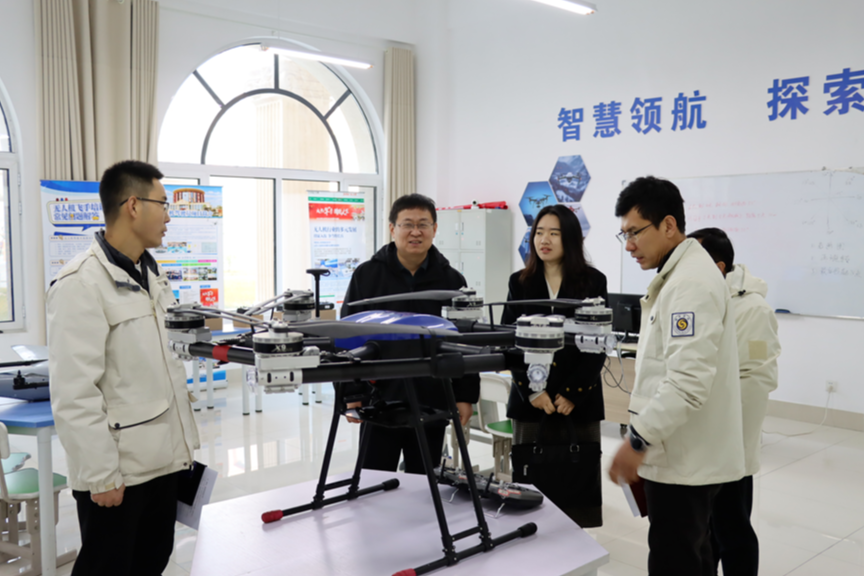 交流座谈中,山东深泉技师学院领导表示下一步将不断整合场地、教学、技术和就业资源,主动对接和联合我县相关部门,构建“理论授课+实操实训+就业推荐+创业孵化”全链条培养模式,全面满足我县职工的多元化发展需求。汝主任表示,学院可以建立“企校协同”育人机制,做好“产教融合”,打通人才培养与产业需求的“最后一公里”,为我县持续输送实用型、复合型无人机专业人才,助力我县低空经济腾飞,为我县数字技术与实体经济深度融合注入新活力。